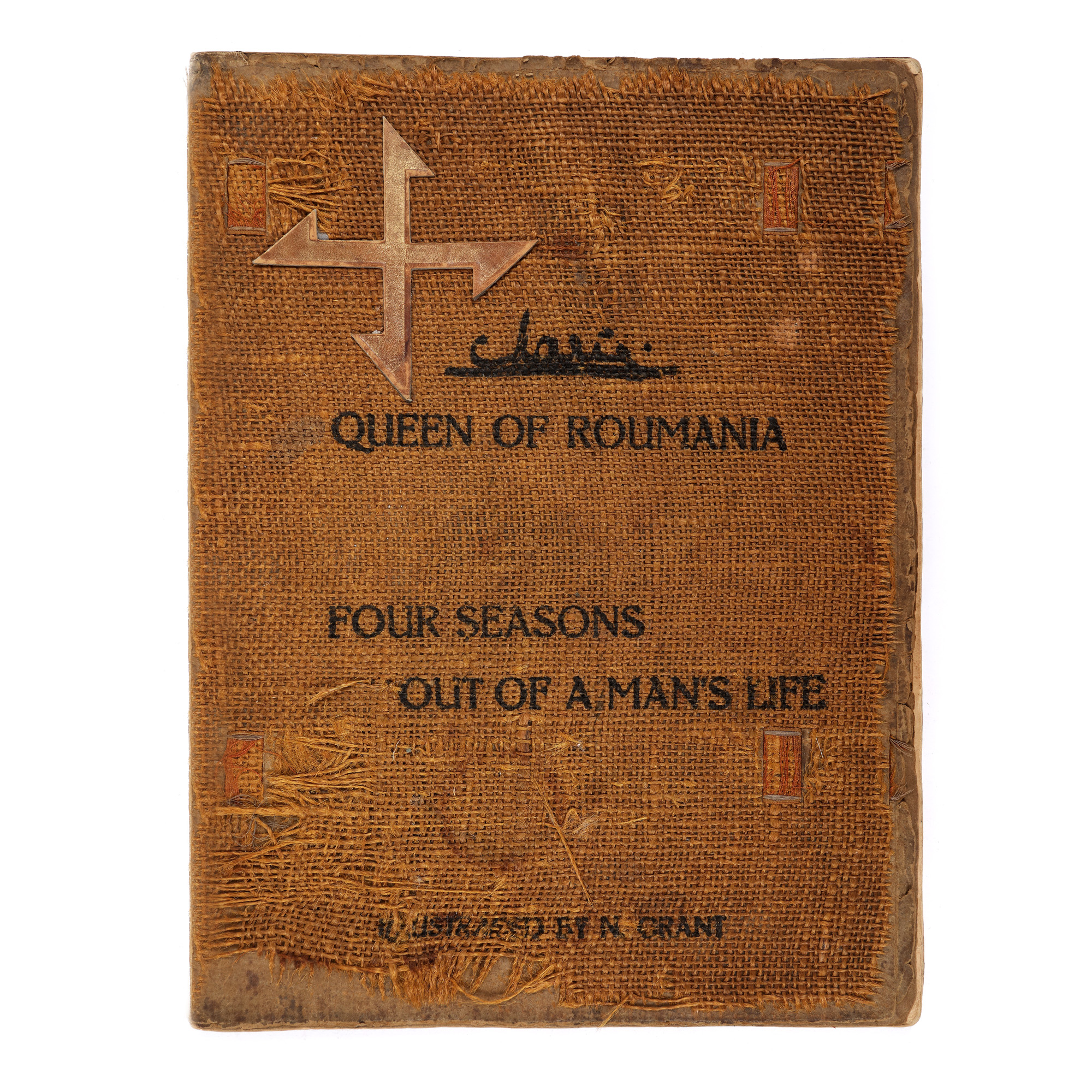 25. ”Patru anotimpuri din viața unui om”, de Regina Maria, ediție engleză, București, 1915, cu ilustrații realizate de pictorul Nicolae Grant, serie de lux, exemplar numerotat 27, cu semnătura olografă a Reginei Maria și etui