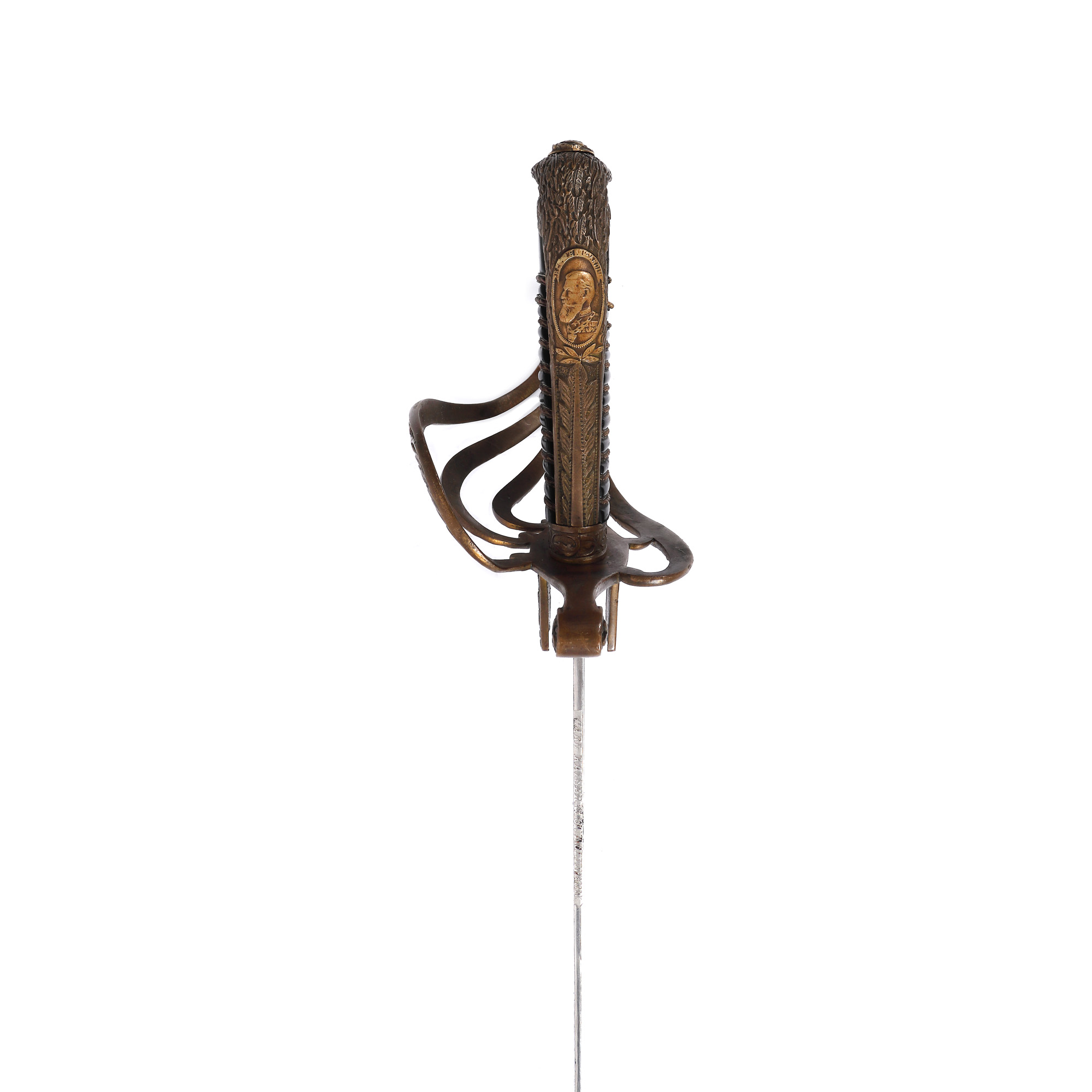 14. Sabie de ceremonie cu teacă, ofițer de cavalerie, oțel de Solingen, cu cifrul Regelui Carol I și stema Regatului Românieipe lamă și efigia Regelui pe mâner, de colecție