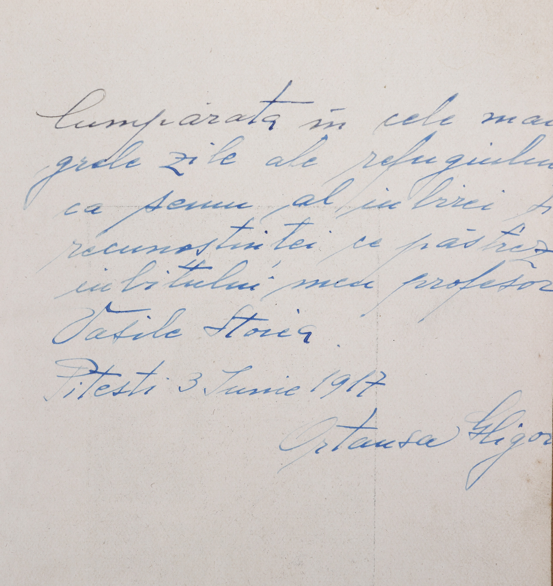 Pe foaia de gardă prezintă textul olograf, scris cu cerneală albastră: ”Cumpărată în cele mai grele zile ale refugiului ca semn al iubirei și recunoștinței ce păstrez iubitului meu profesor Vasile Stoica. Pitești 3 iunie 1917 Ortansa Gligor”. Pe contrapagina paginii de titlu regăsim o fotografie rară cu Avram Iancu.