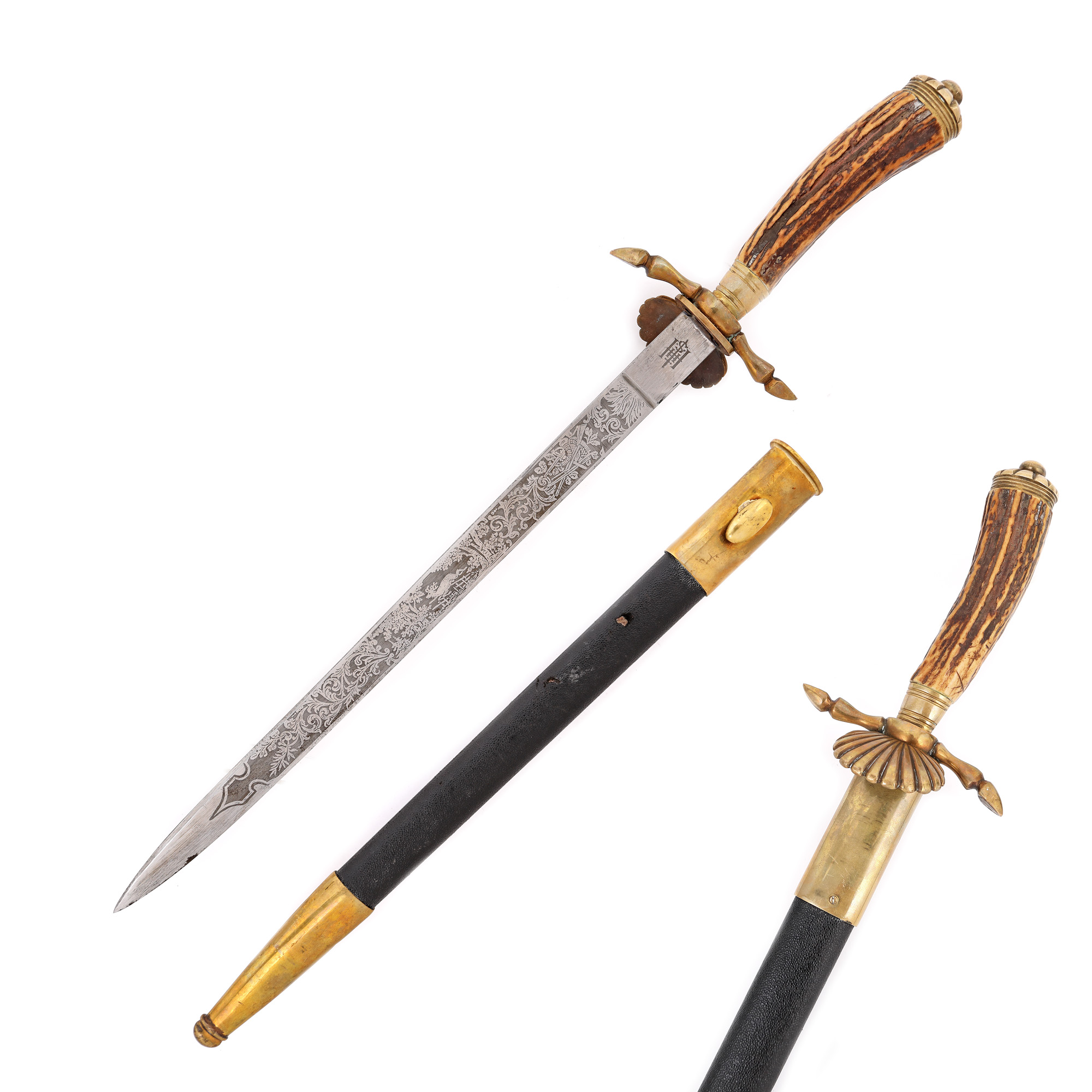 oțel, corn de căprior, alamă