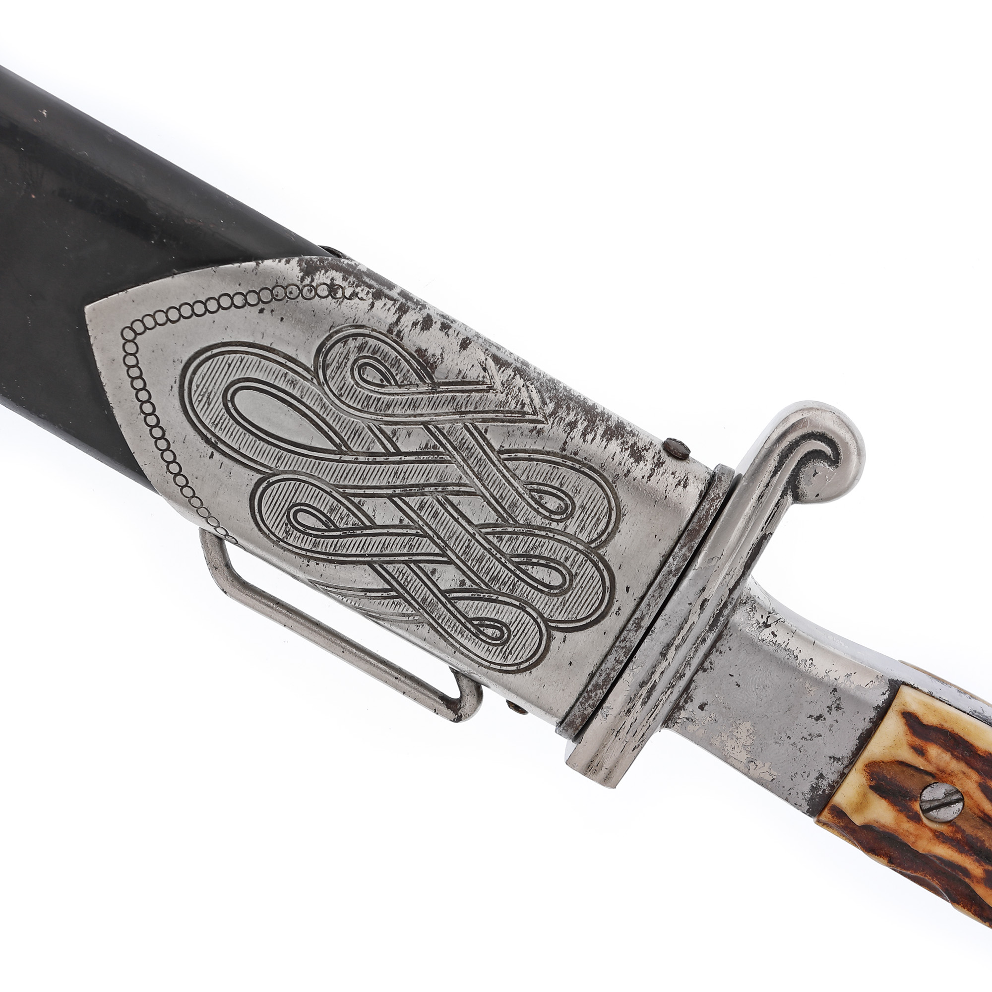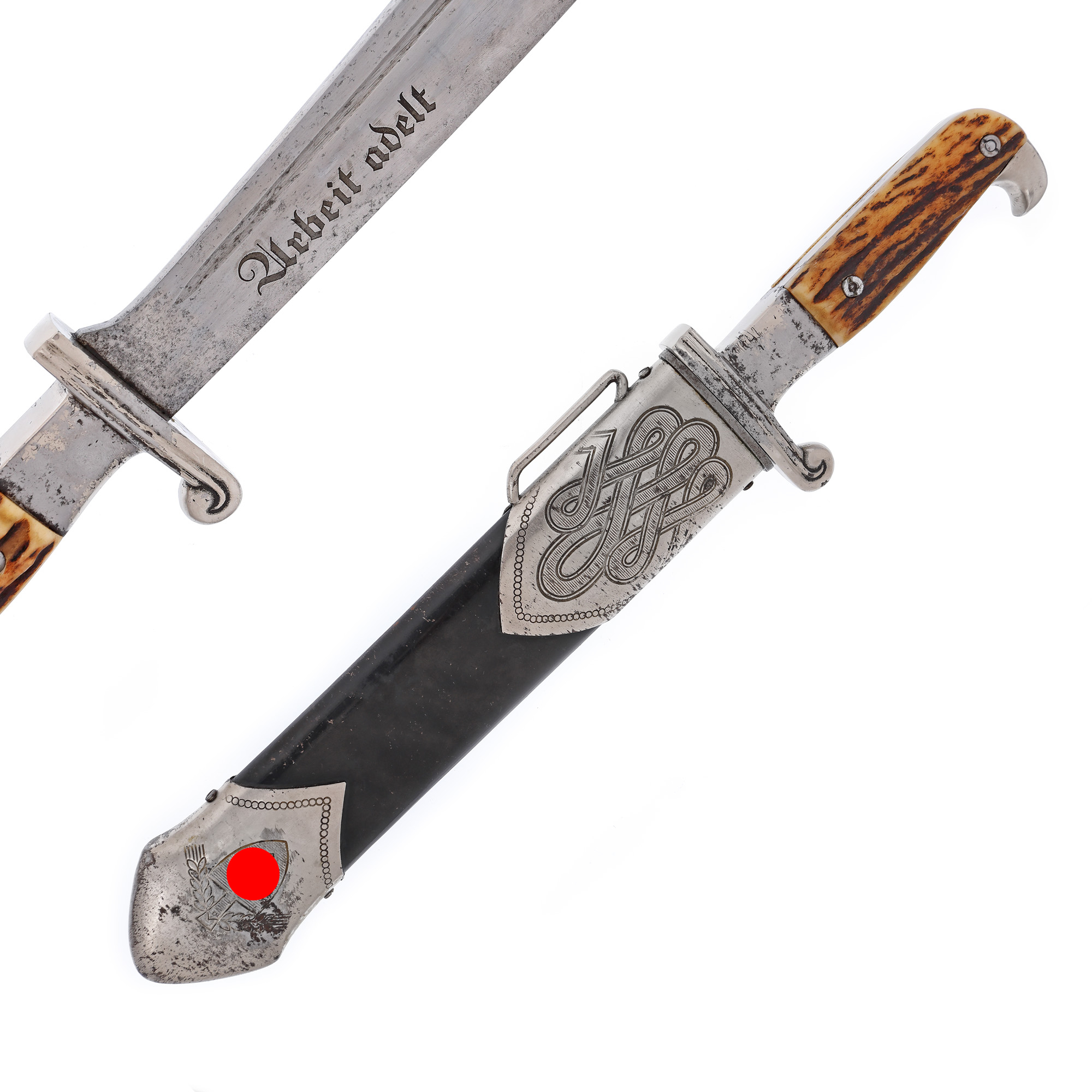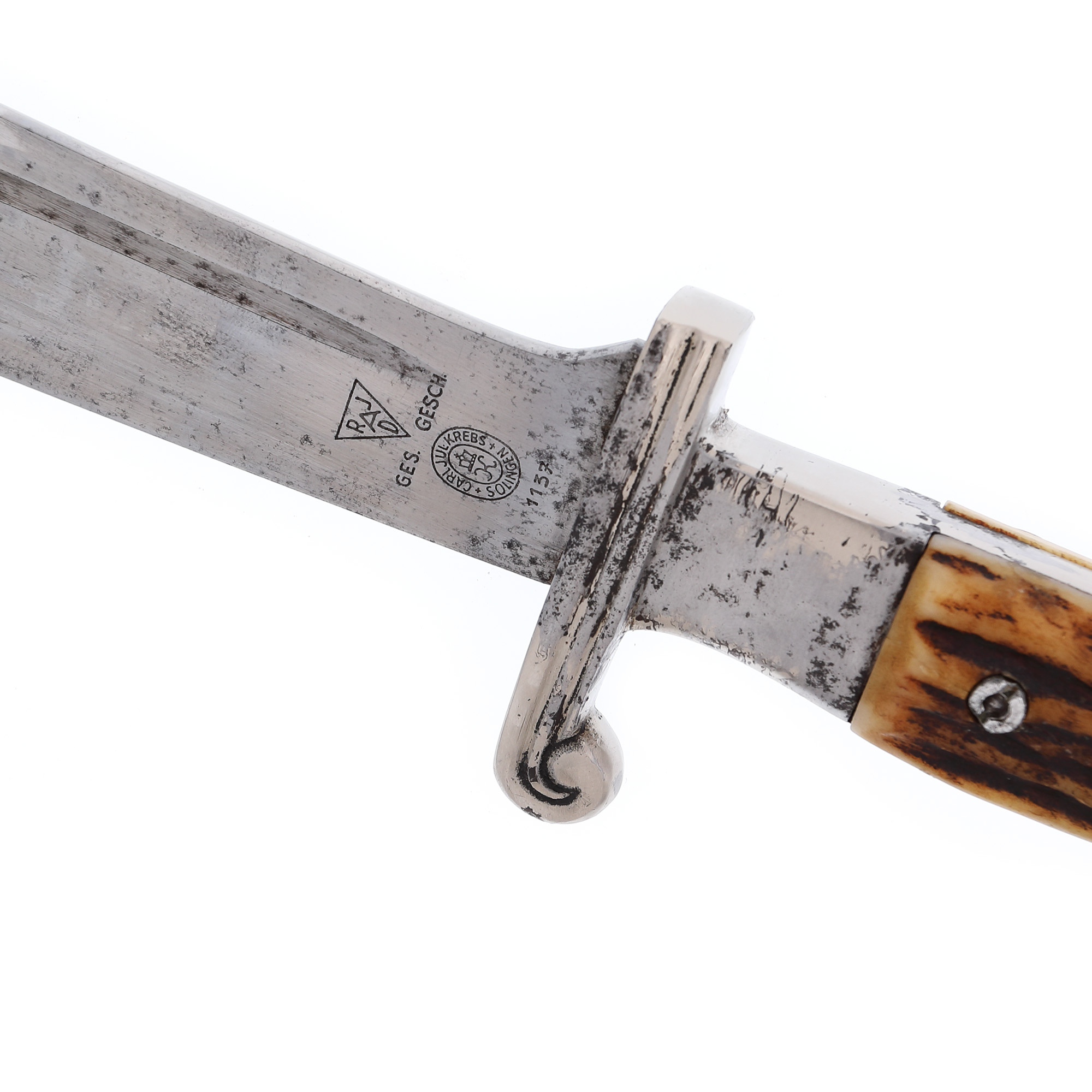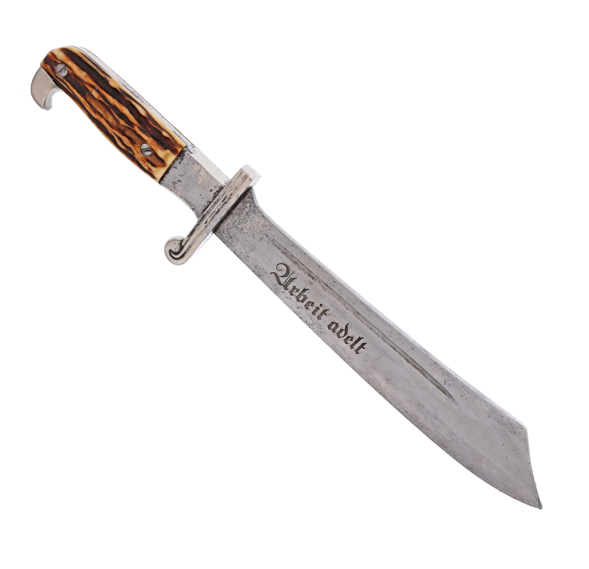 Pumnalul este produs de Carl Julius Krebs, Solingen, iar lama este gravată cu deviza ”Arbeit adelt” (Munca înnobilează).