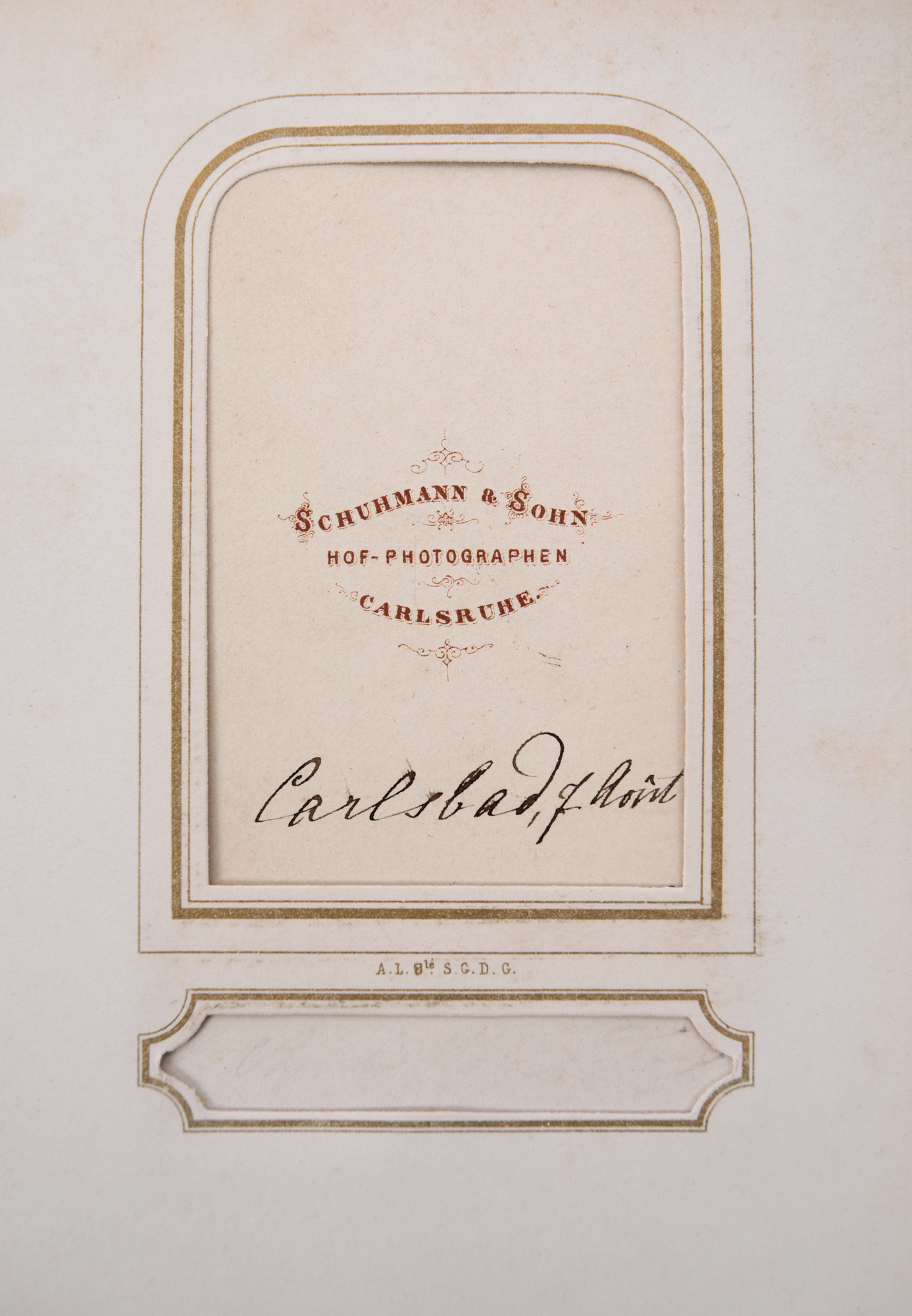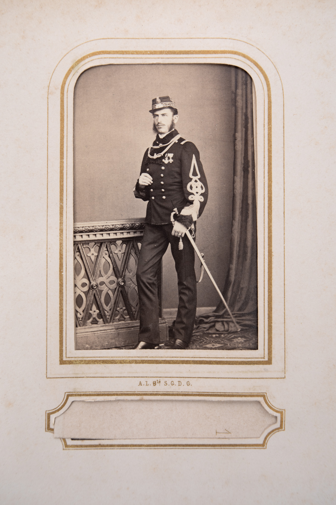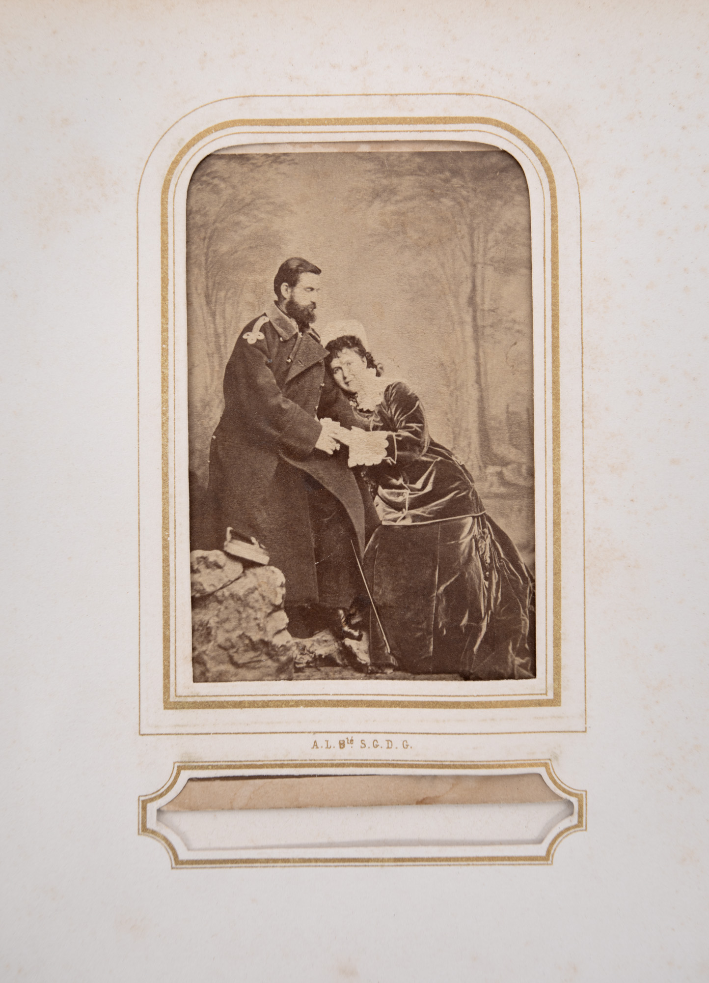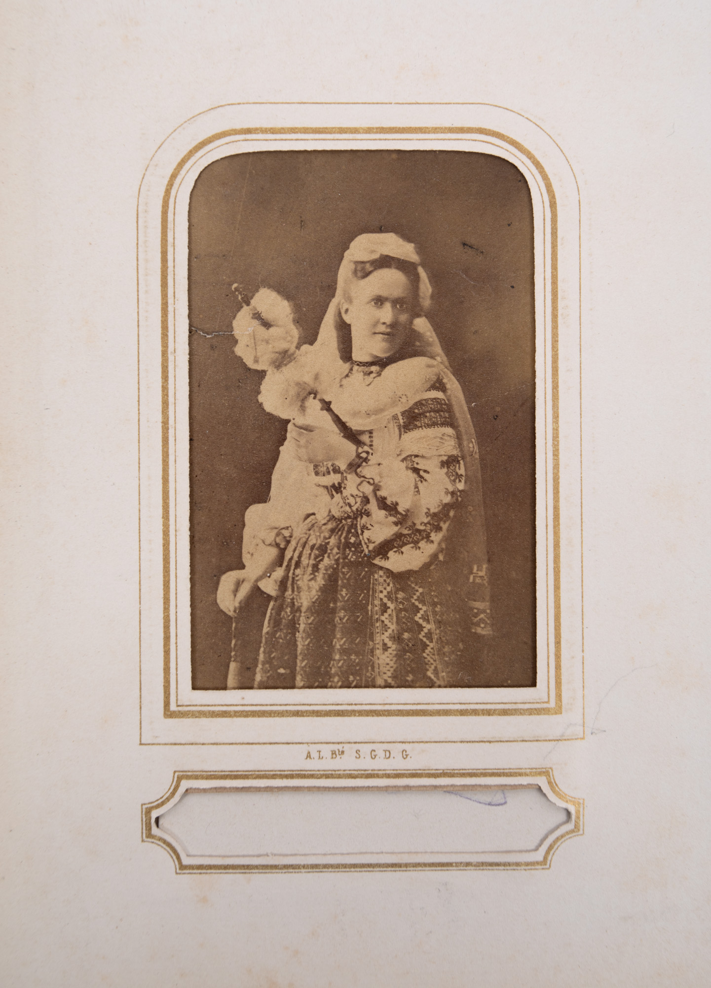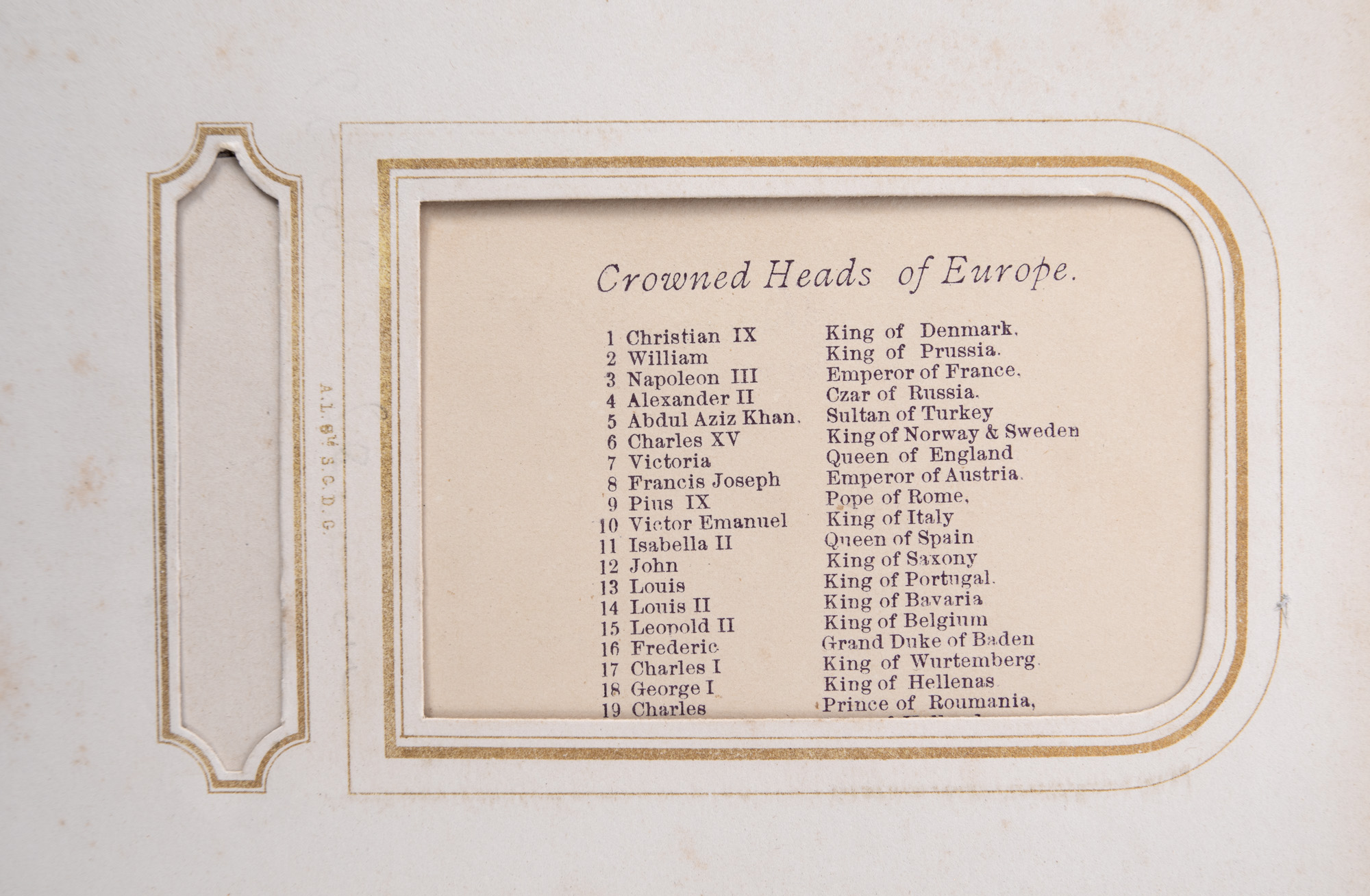 27. Album cu 85 de fotografii ale regelui Carol I, reginei Elisabeta și ale rudelor germane ale acestora, realizate de fotografii Carol Popp de Szathmary, Franz Duschek și alți fotografi din epocă, 1865-1883, provine din colecția familiei Mavrocordat, cu cifrul Irinei Mavrocordat