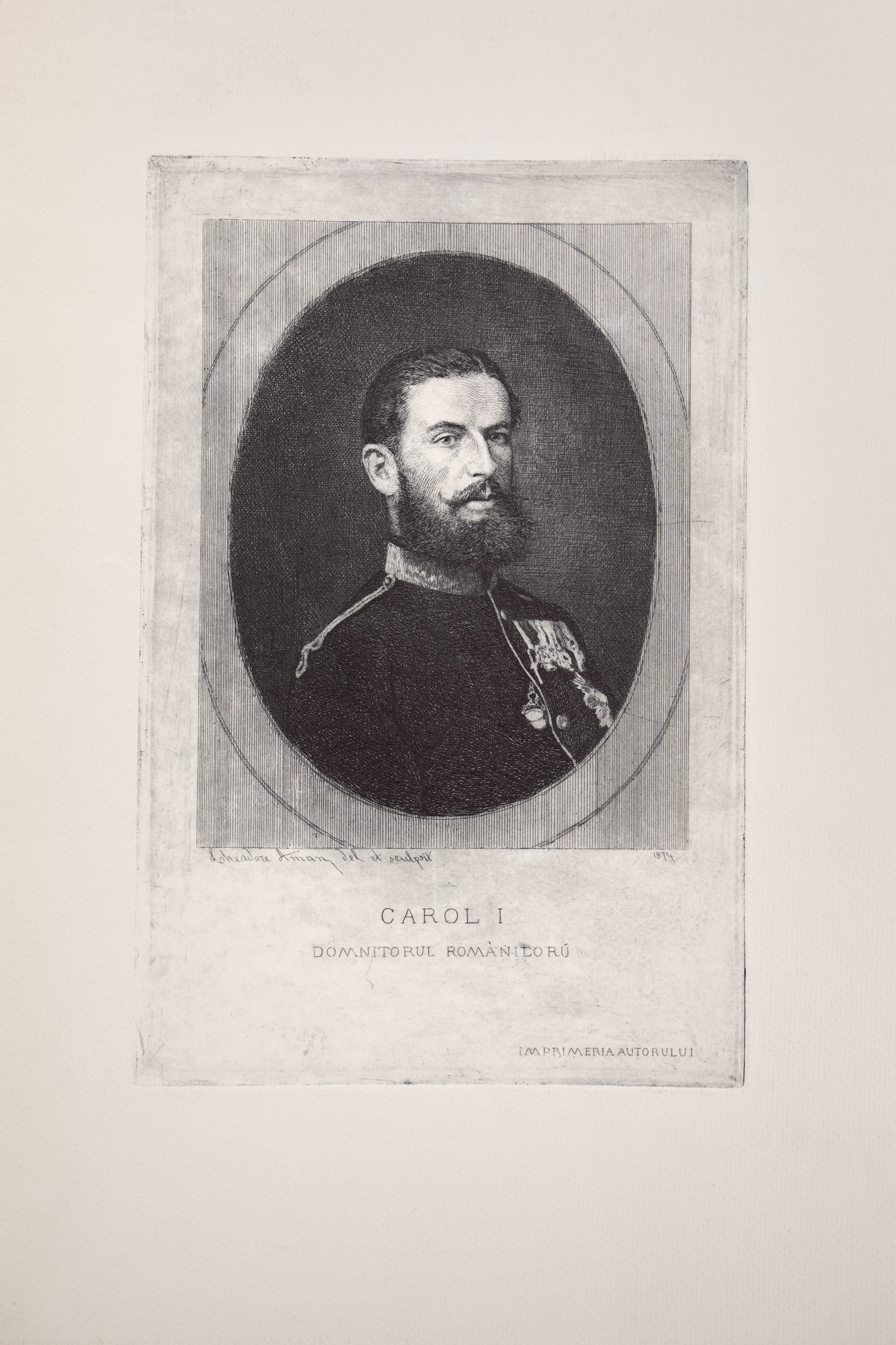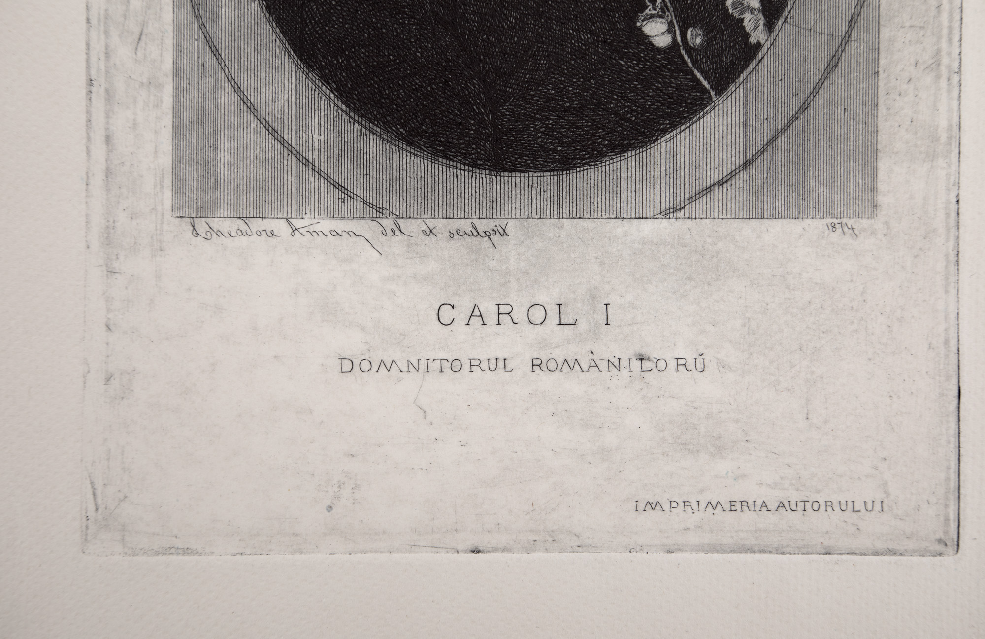 semnat, gravat, stânga jos, "Theodore Aman del et sculpsit", datat, gravat, dreapta jos, "1874"