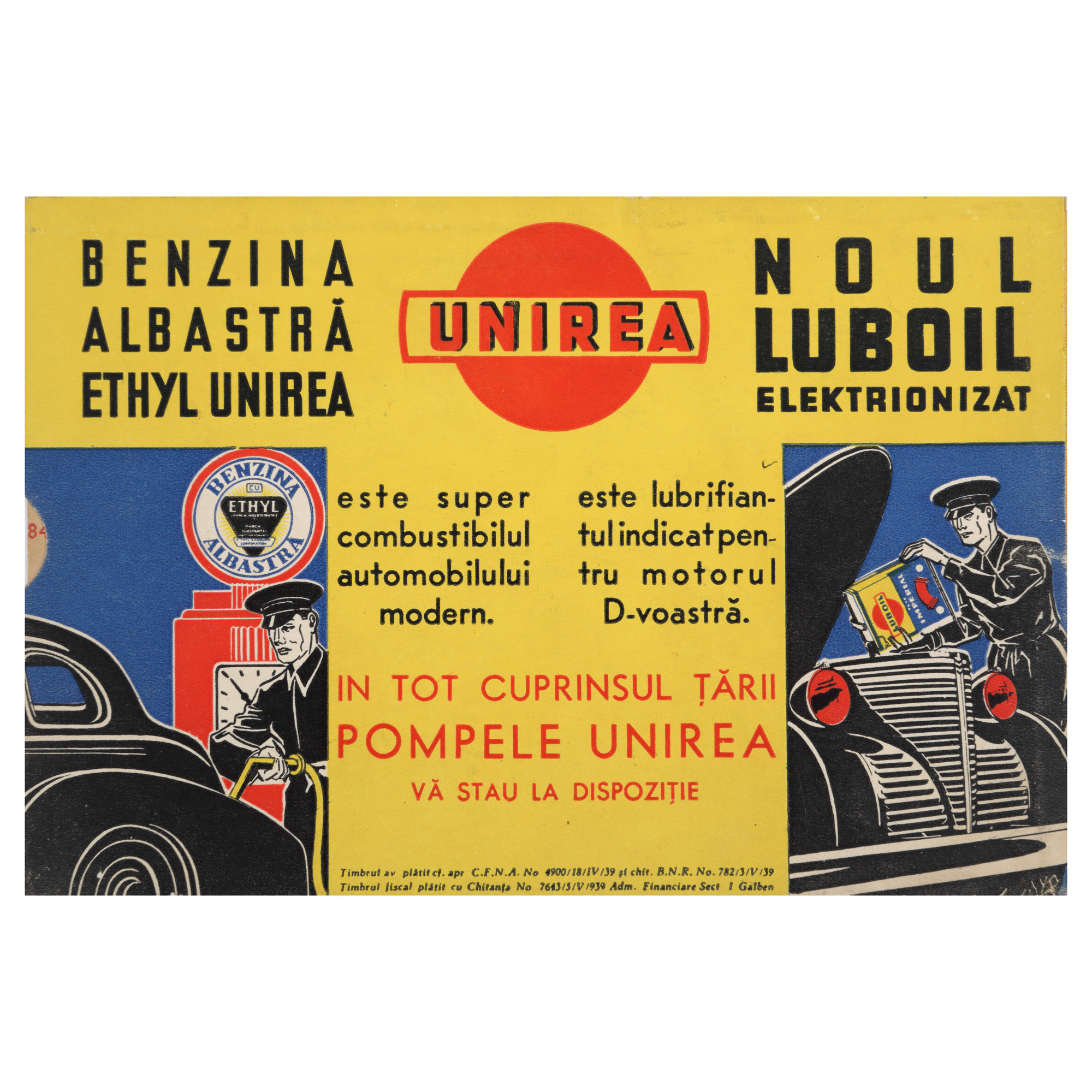 34. Indicator kilometric ilustrând România Mare, reclamă la benzinăria "Unirea", 1939