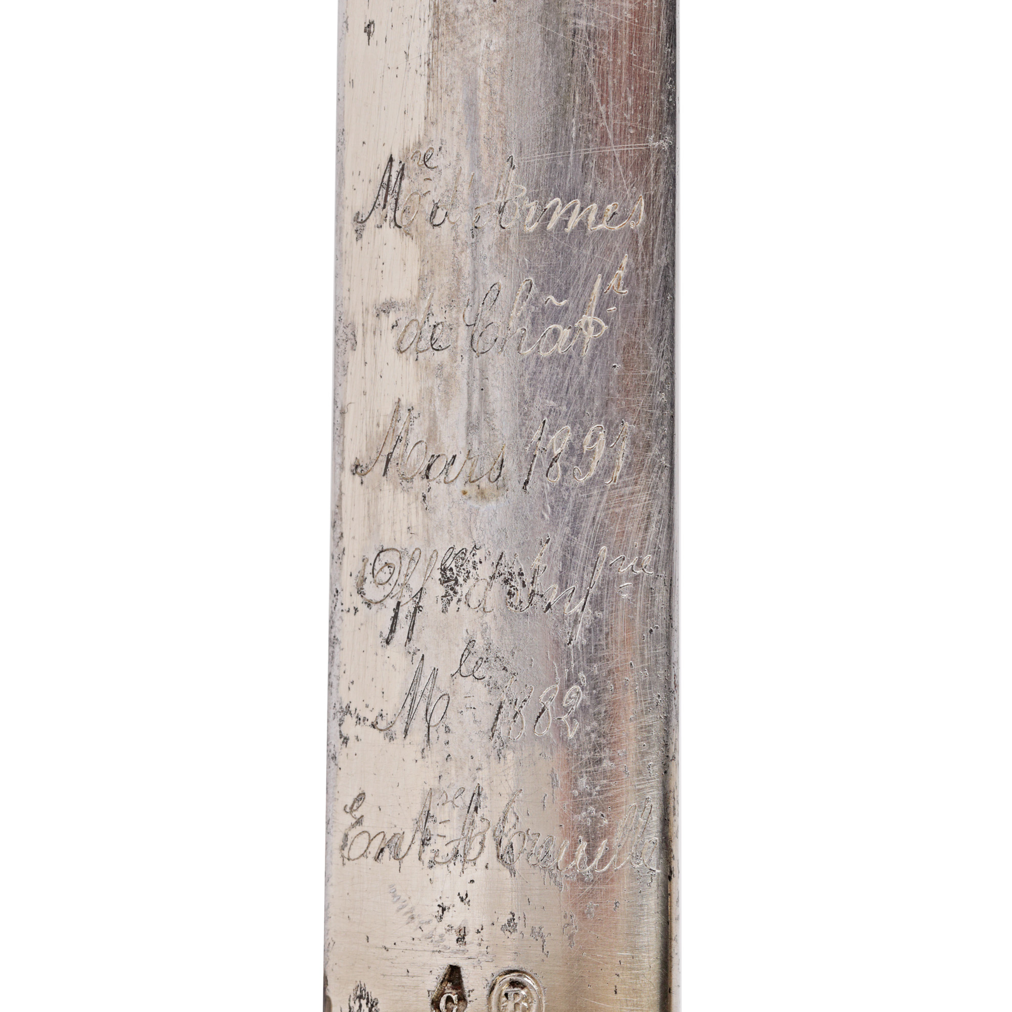 9. Sabie de ofițer, model 1882, cu teacă și datată 1891, Franța, folosită de ofițerii francezi veniți în România în cadrul Misiunii militare franceze în 1917-1918, în Primul Război Mondial