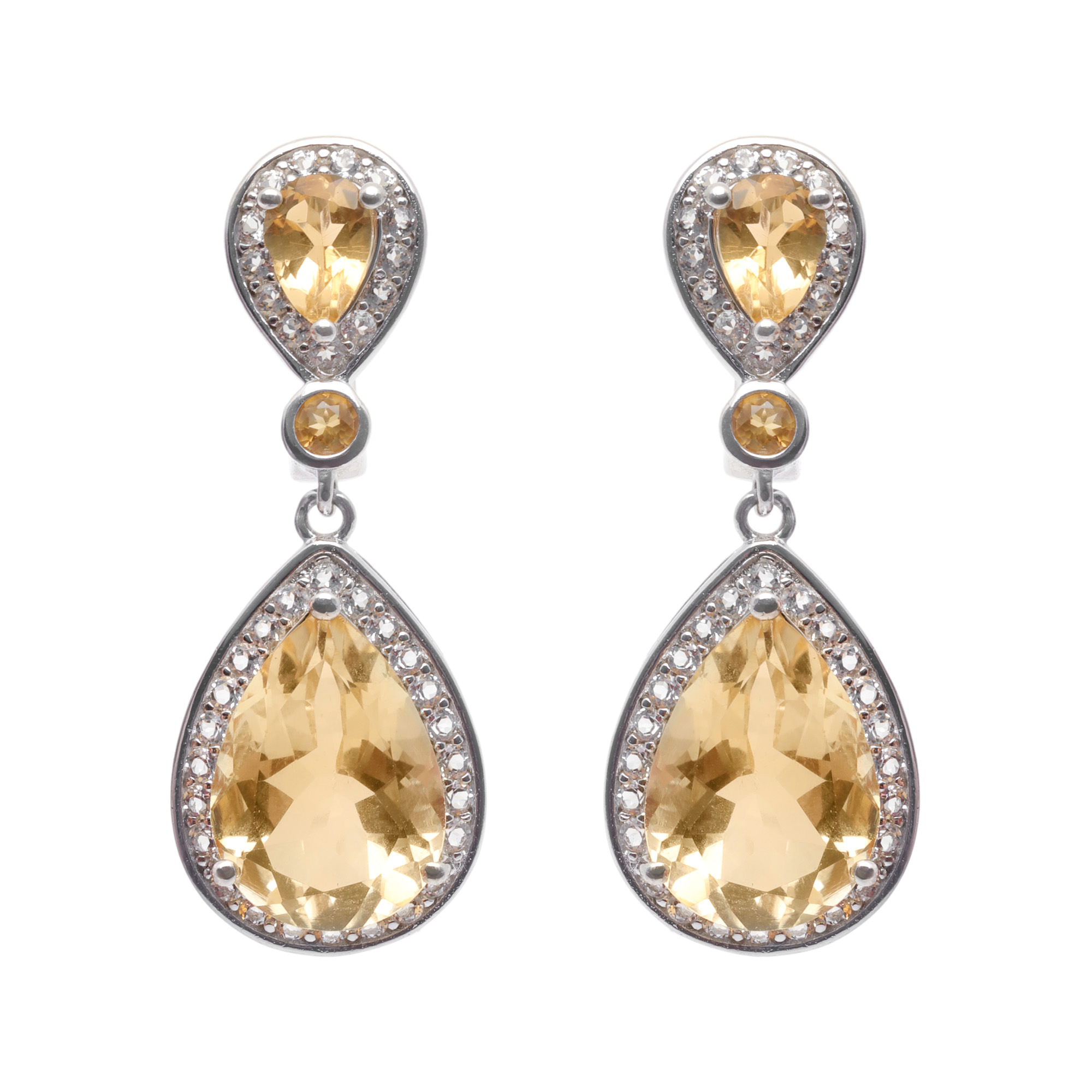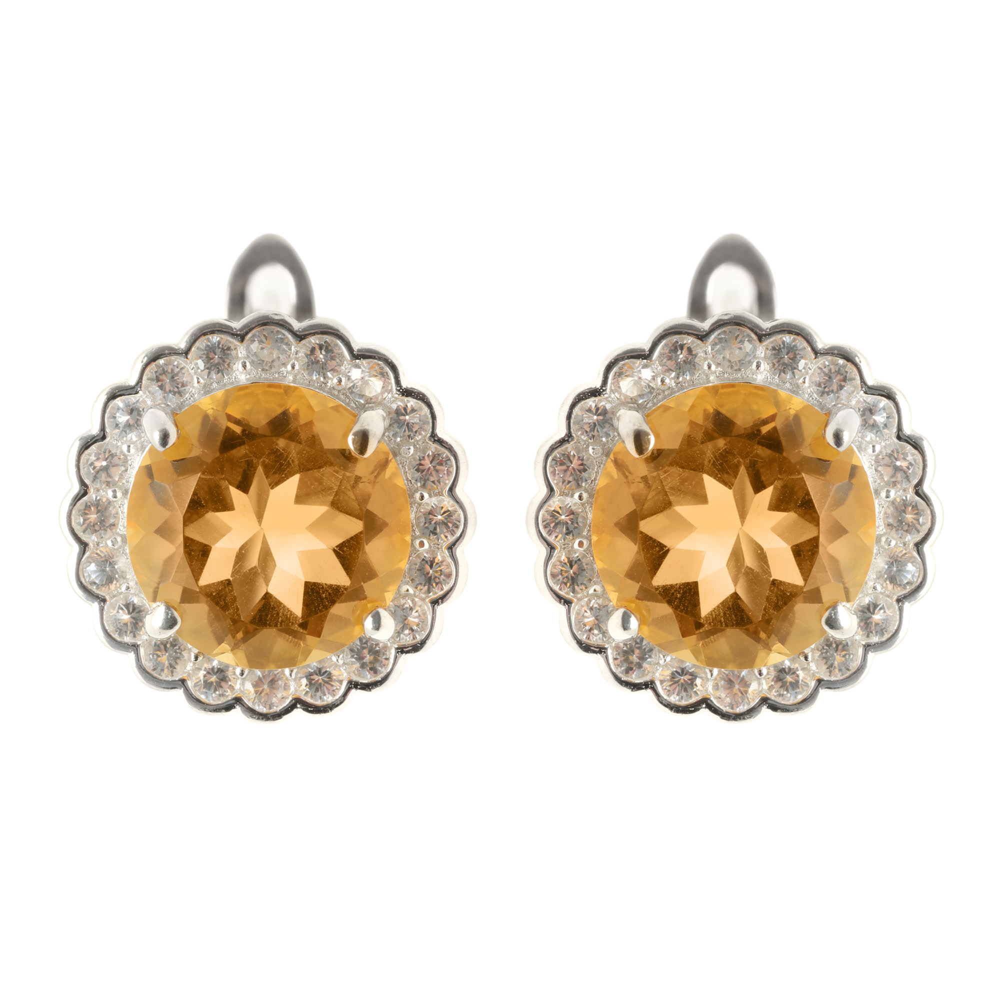 24. Pereche de cercei din argint, decorată cu citrine și safire albe