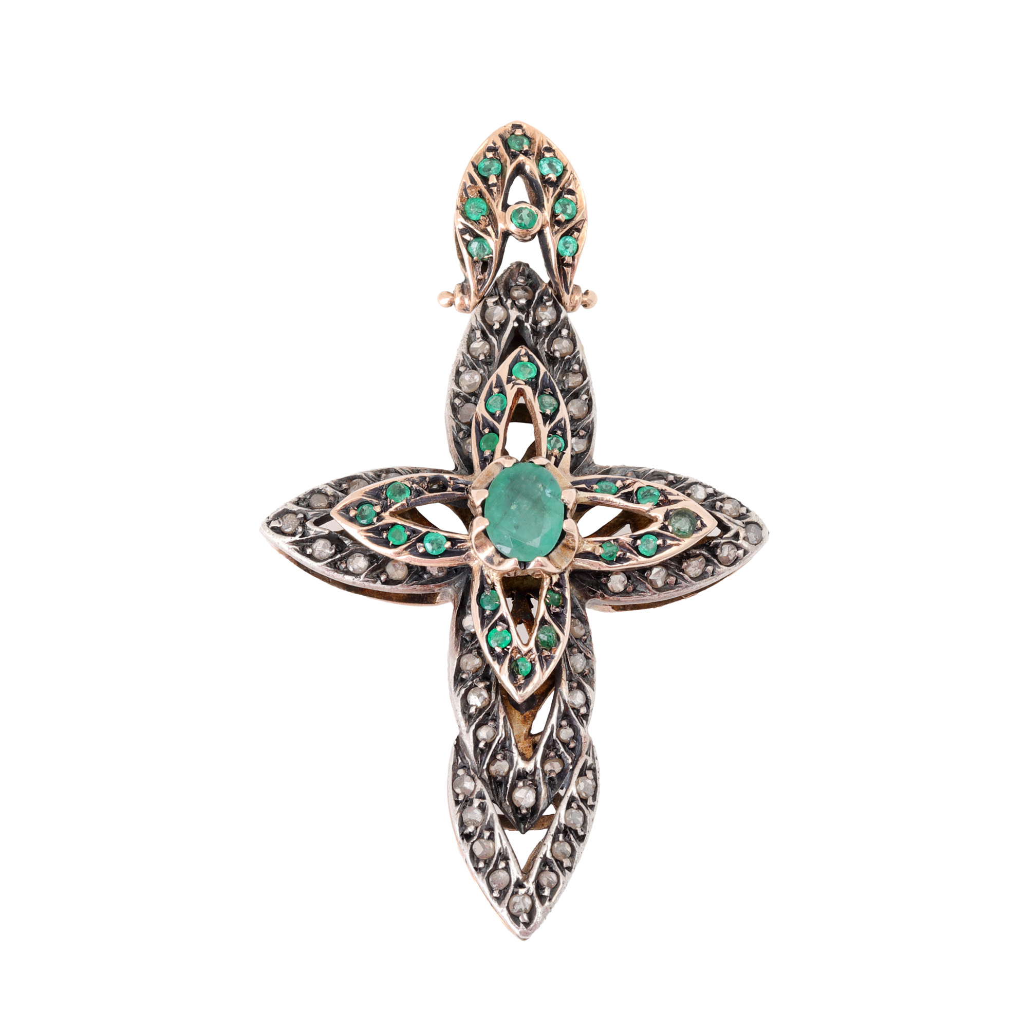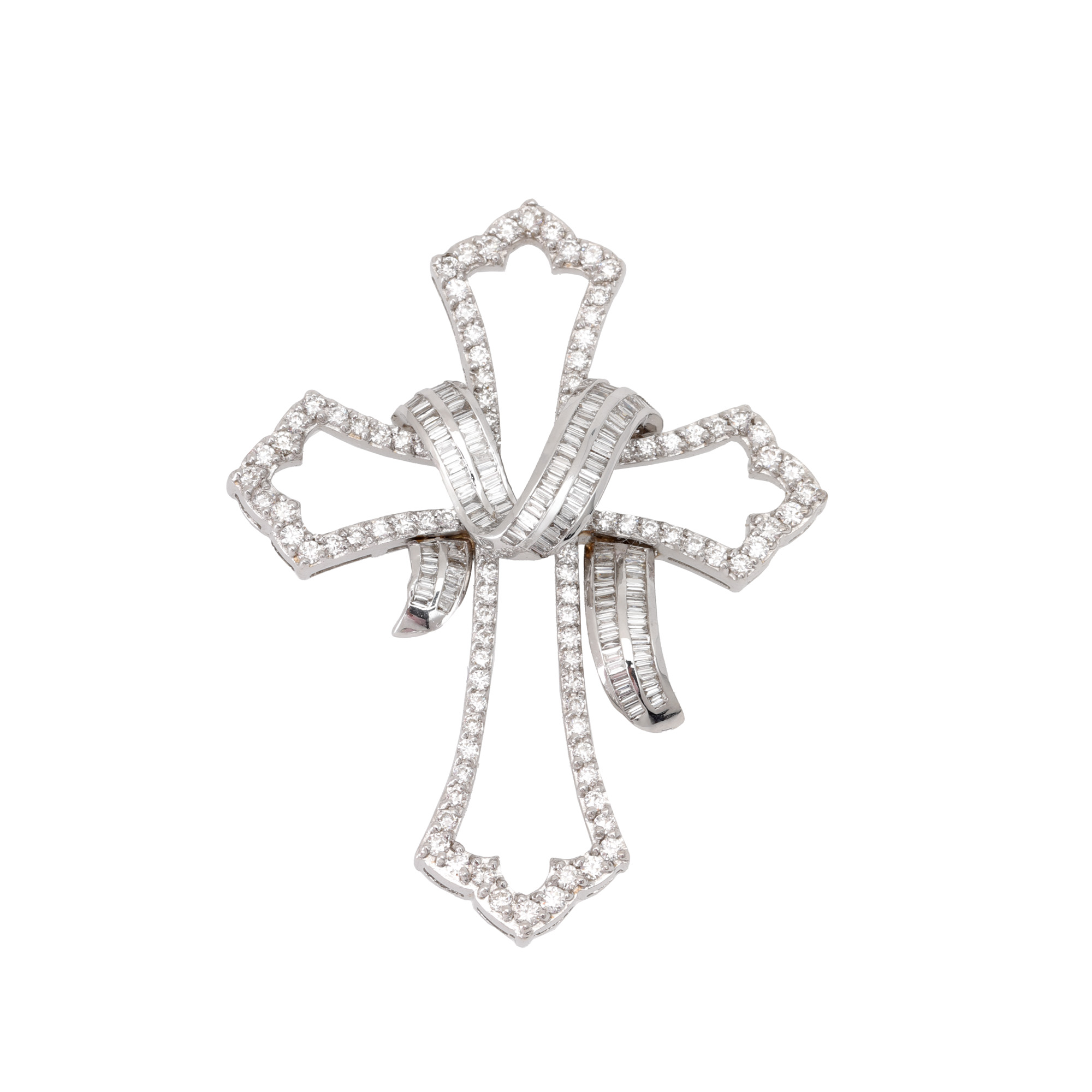 18. Pandantiv din aur alb, sub formă de cruce, decorat cu multitudine de diamante