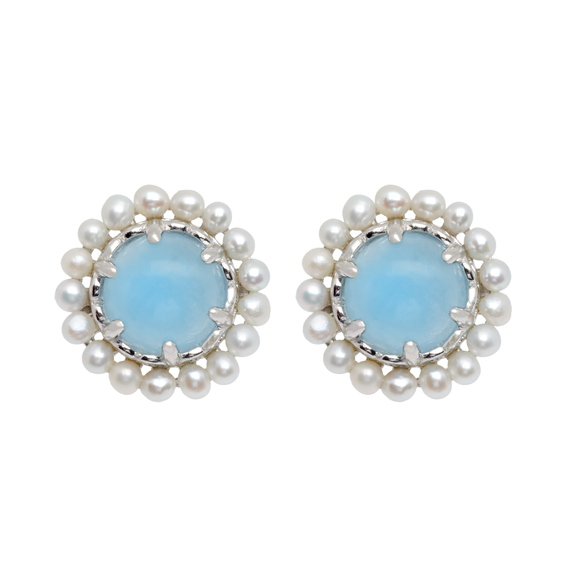 3. Pereche de cercei din argint, decorată cu acvamarin și perle