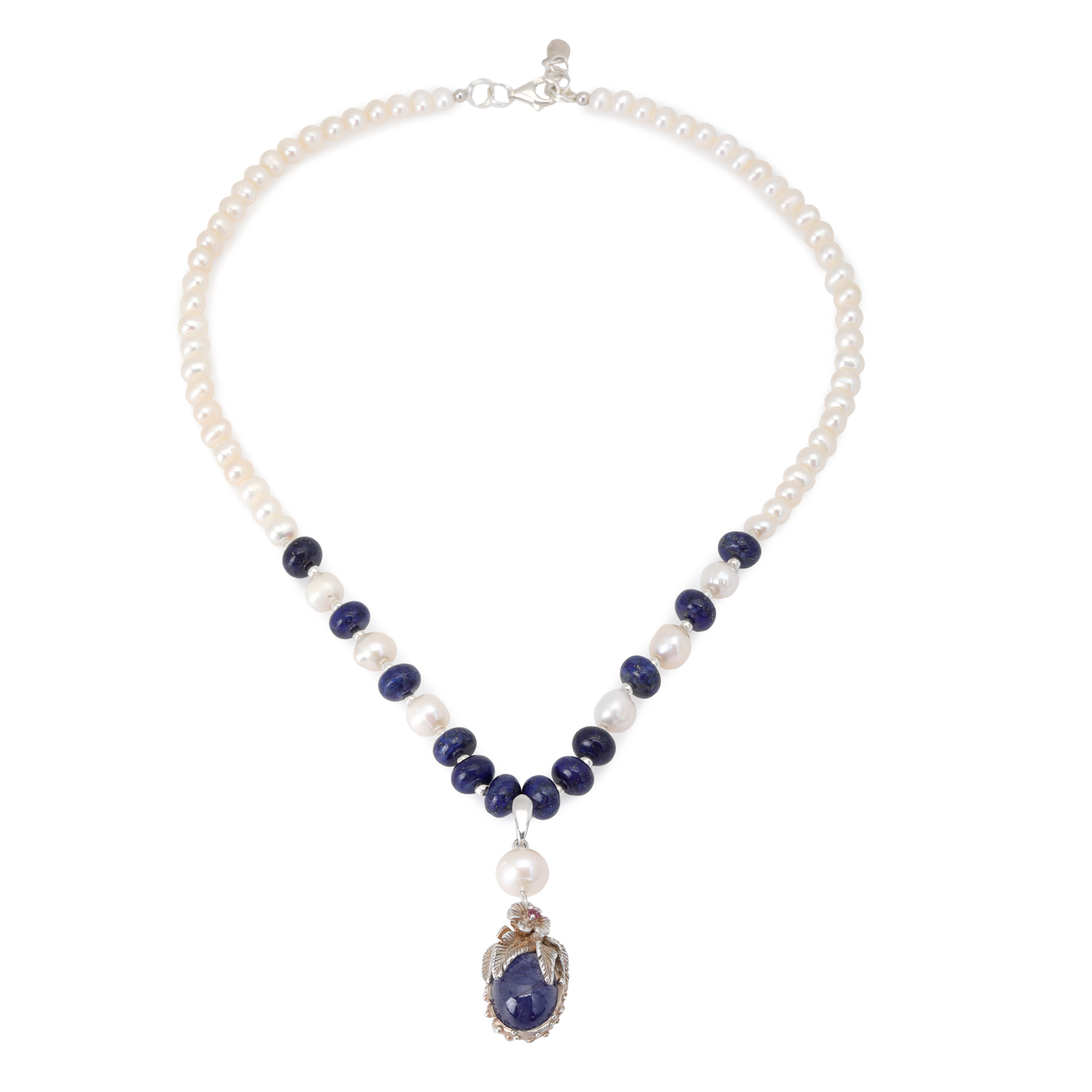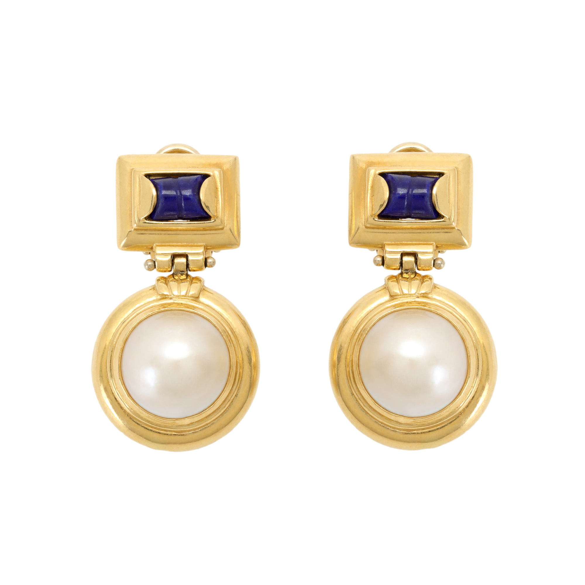 12. Pereche de cercei din aur, decorată cu perle și lapis lazuli