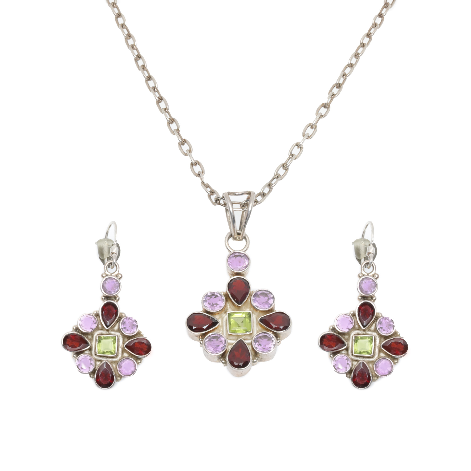 22. Pereche de cercei din argint, decorată cu citrine și safire