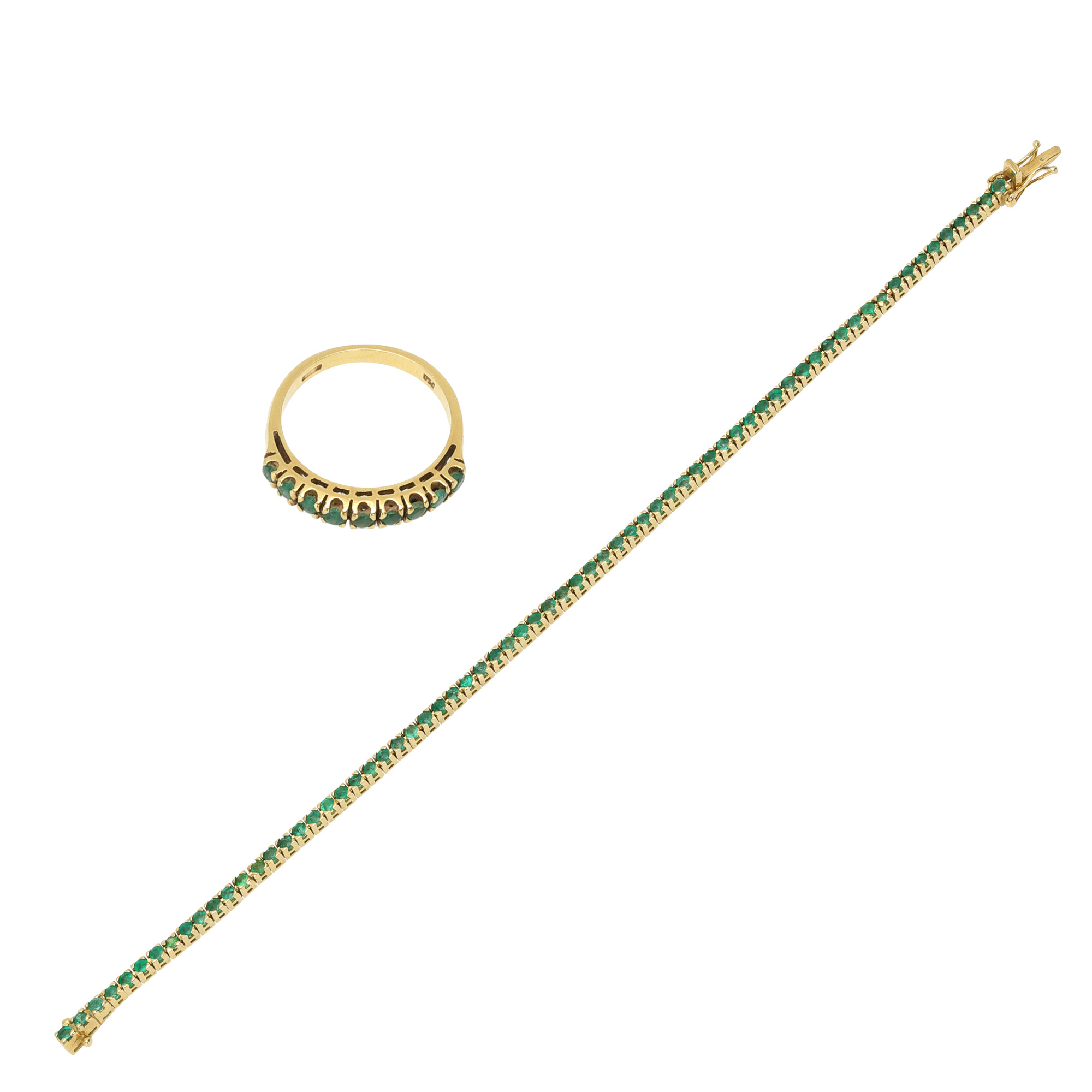 34. Set format din inel și brățară tennis din aur, decorat cu smaralde