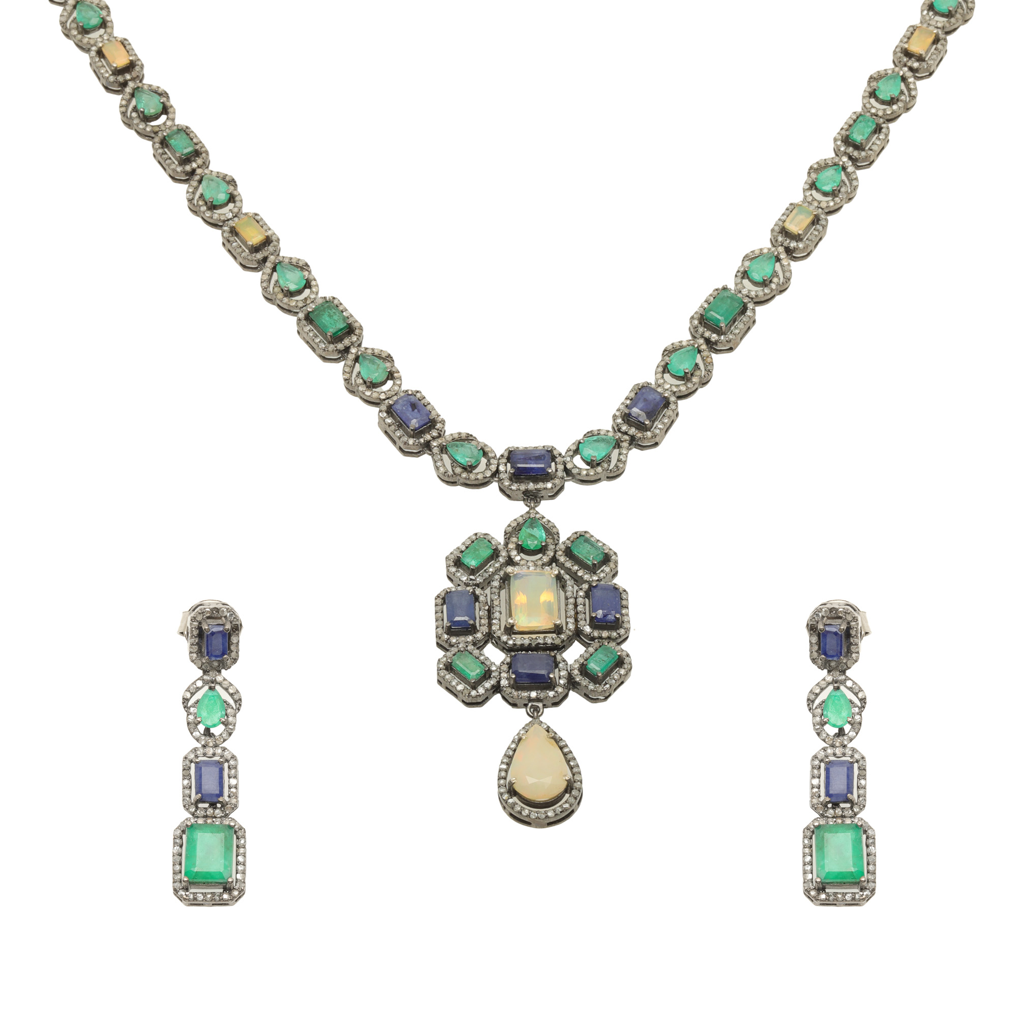 19. Colier din argint aurit, decorat cu multitudine de opale caboșon