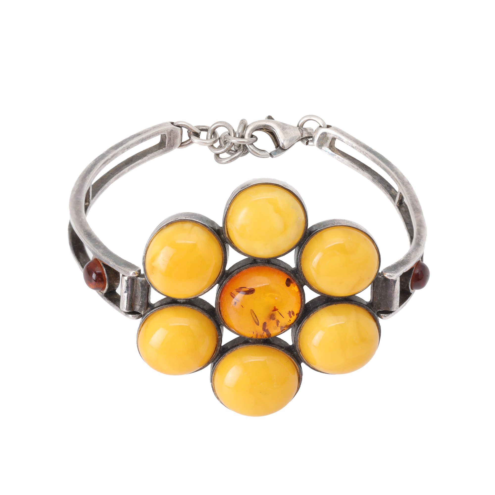20. Broșă din argint aurit, decorată cu ametist caboșon și email pictat