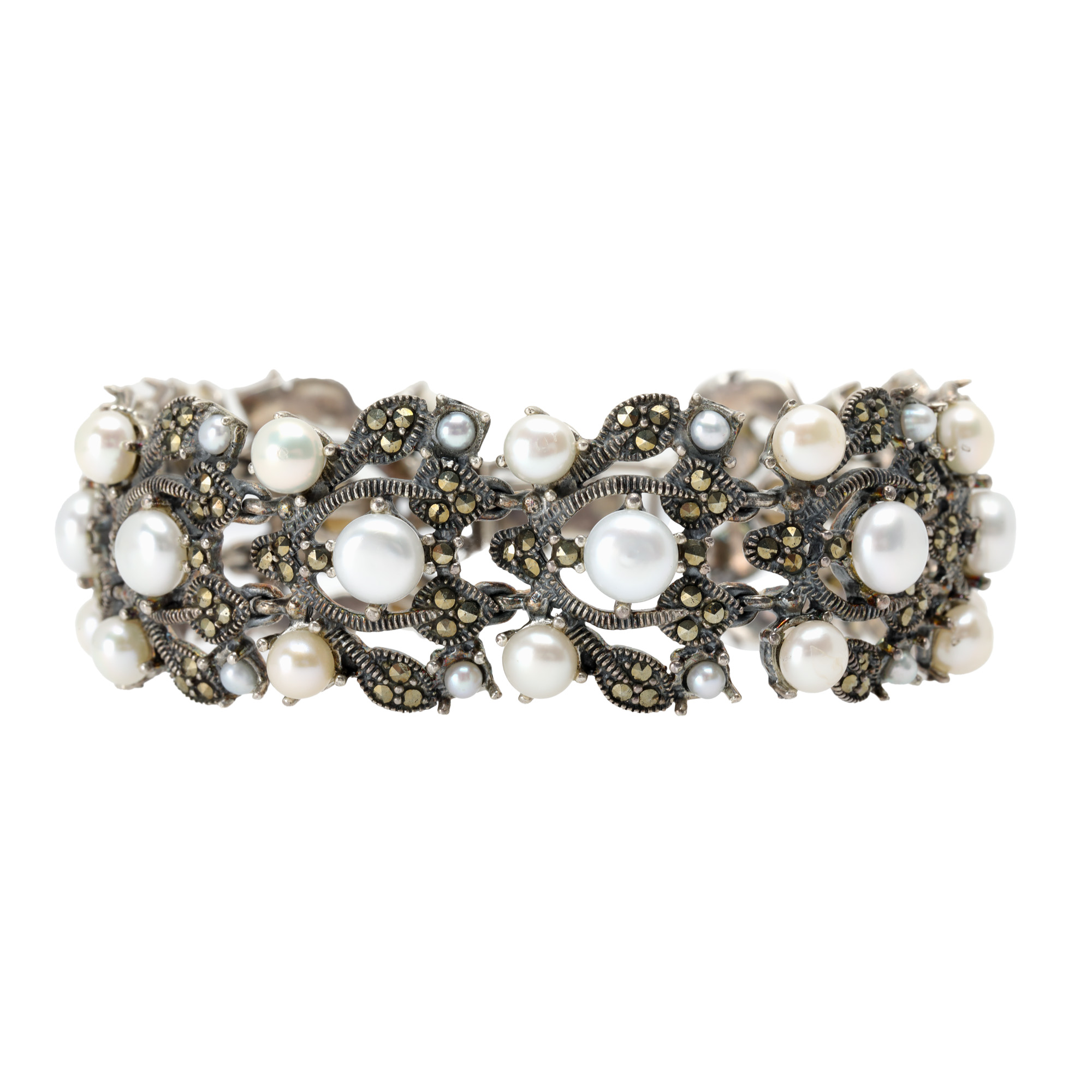 perle de cultură de apă dulce și sărată, rotunde și button, culoare albă, cca. 2,65- 6,52 mm; marcasite