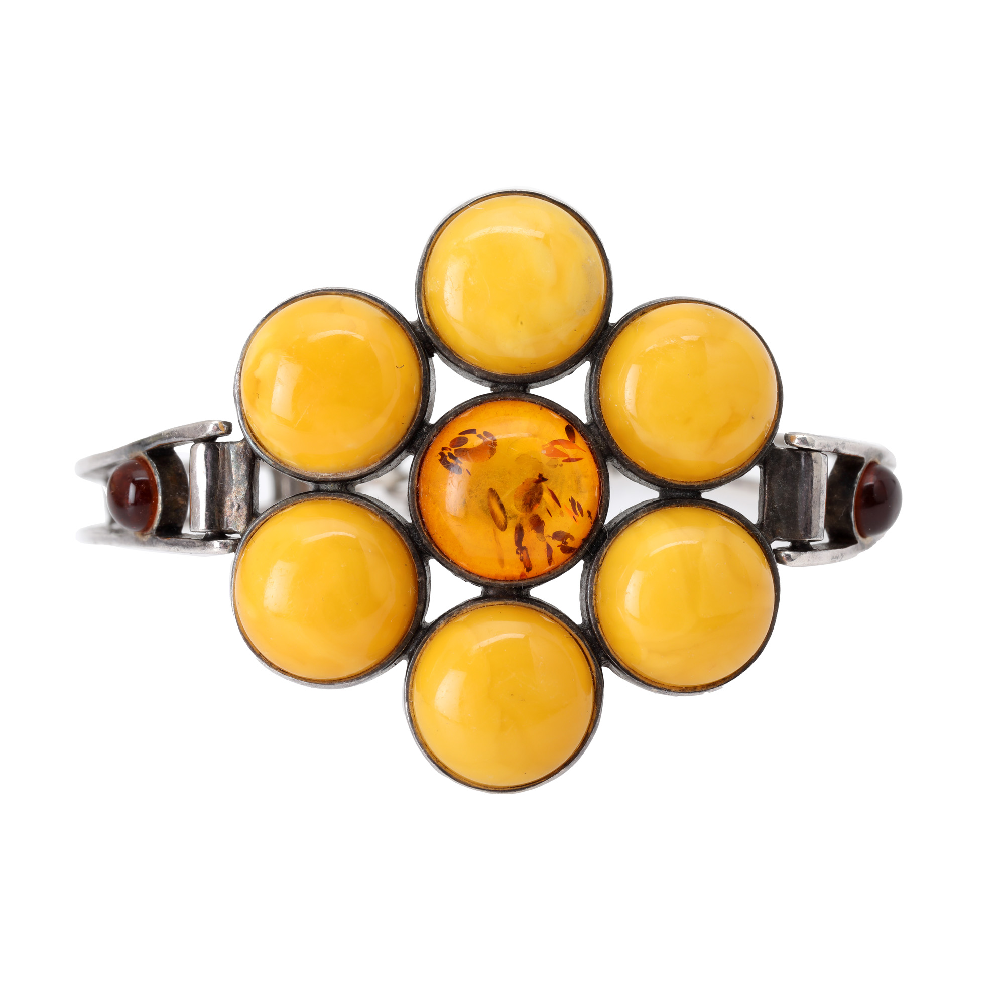 29. Brățară din argint, sub formă de floarea-soarelui, decorată cu chihlimbar