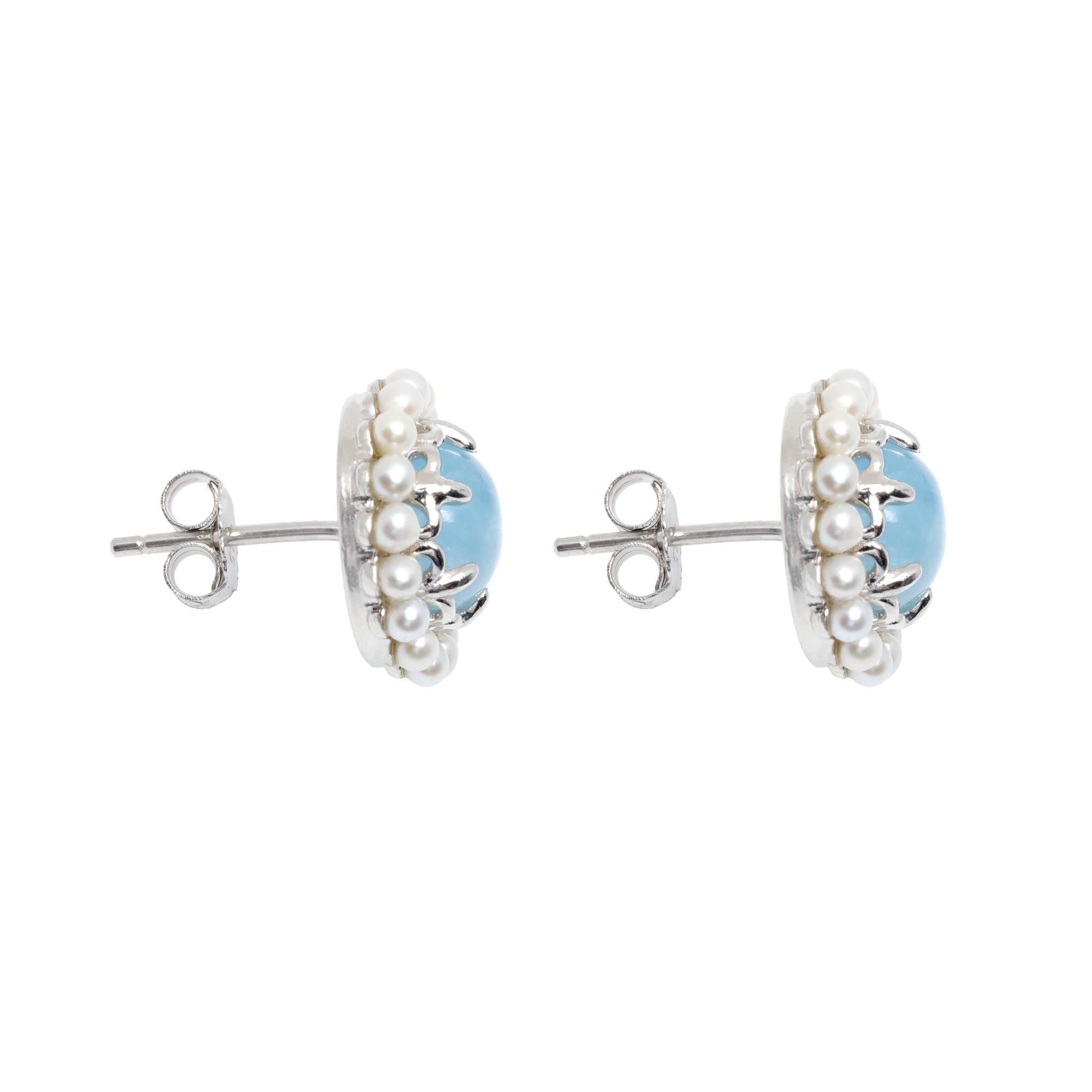 3. Pereche de cercei din argint, decorată cu acvamarin și perle