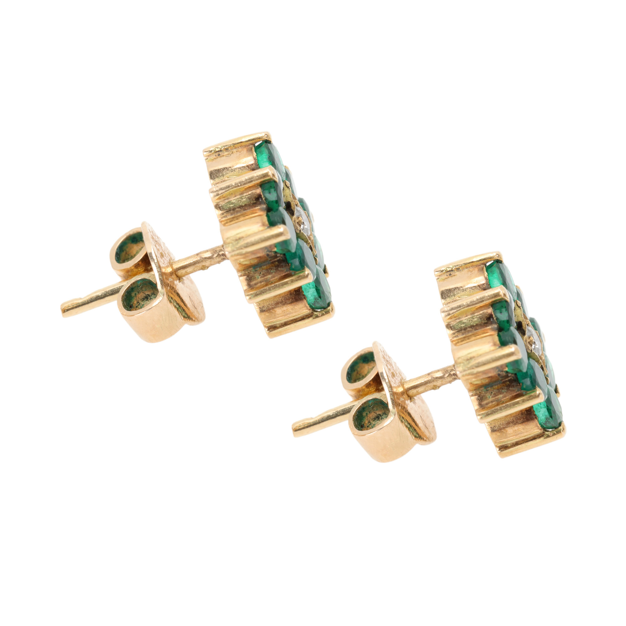 36. Pereche de cercei din aur, decorată central cu diamant, anturat de smaralde