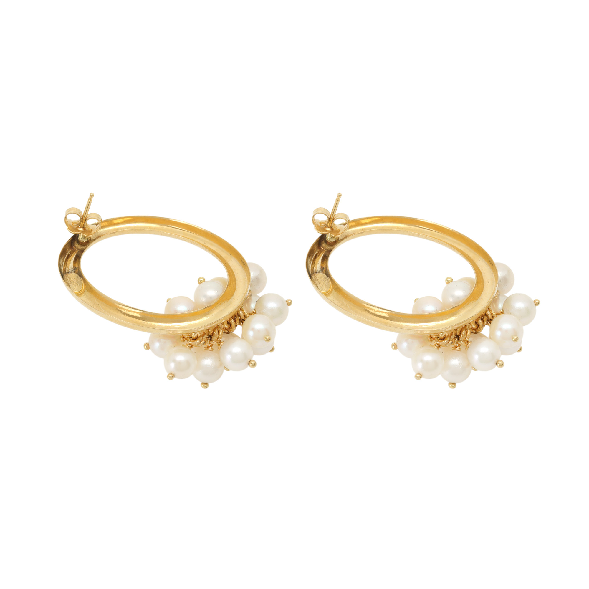 13. Pereche de cercei din aur, decorată cu ciorchini de perle
