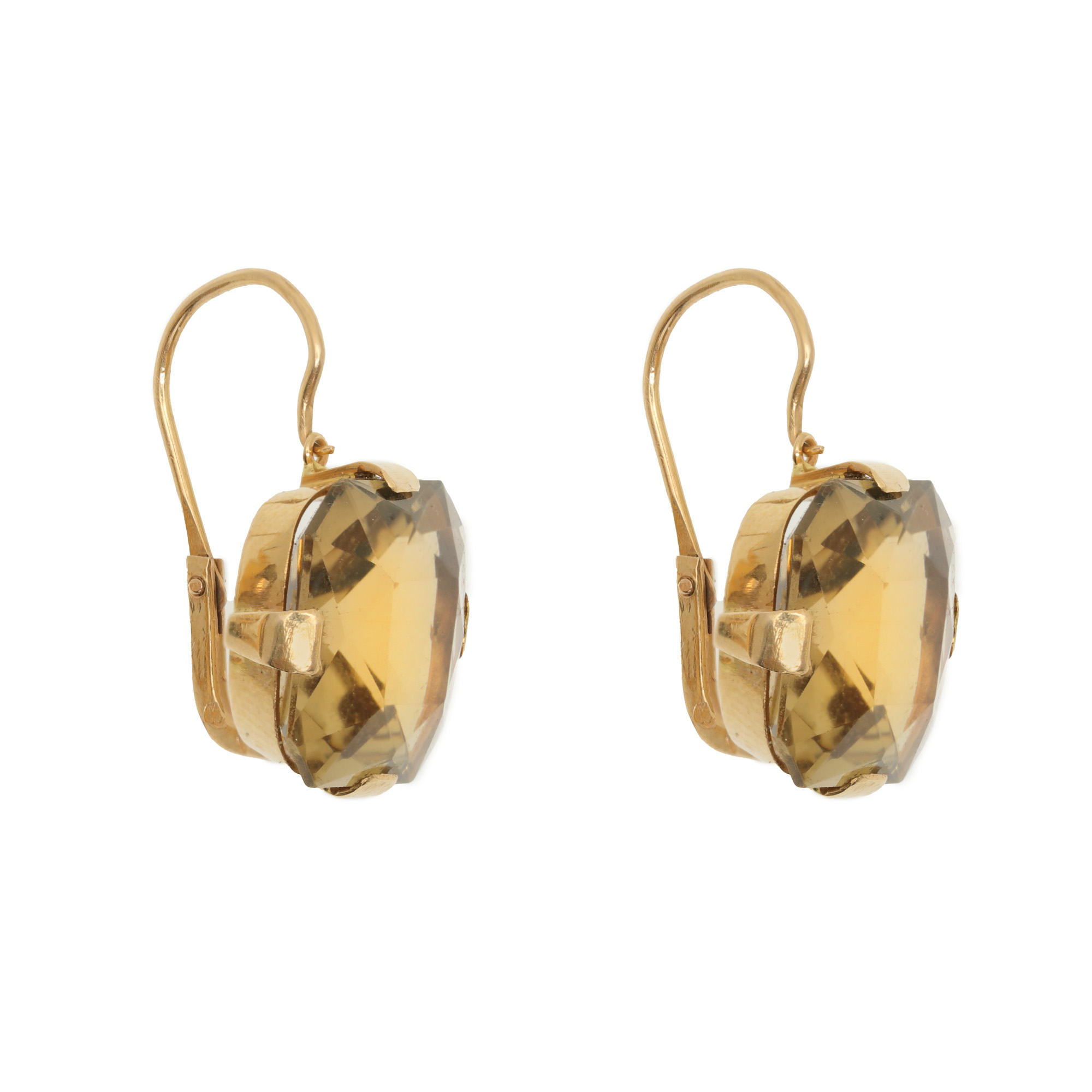 30. Pereche de cercei din aur, decorată cu cuarț fumuriu