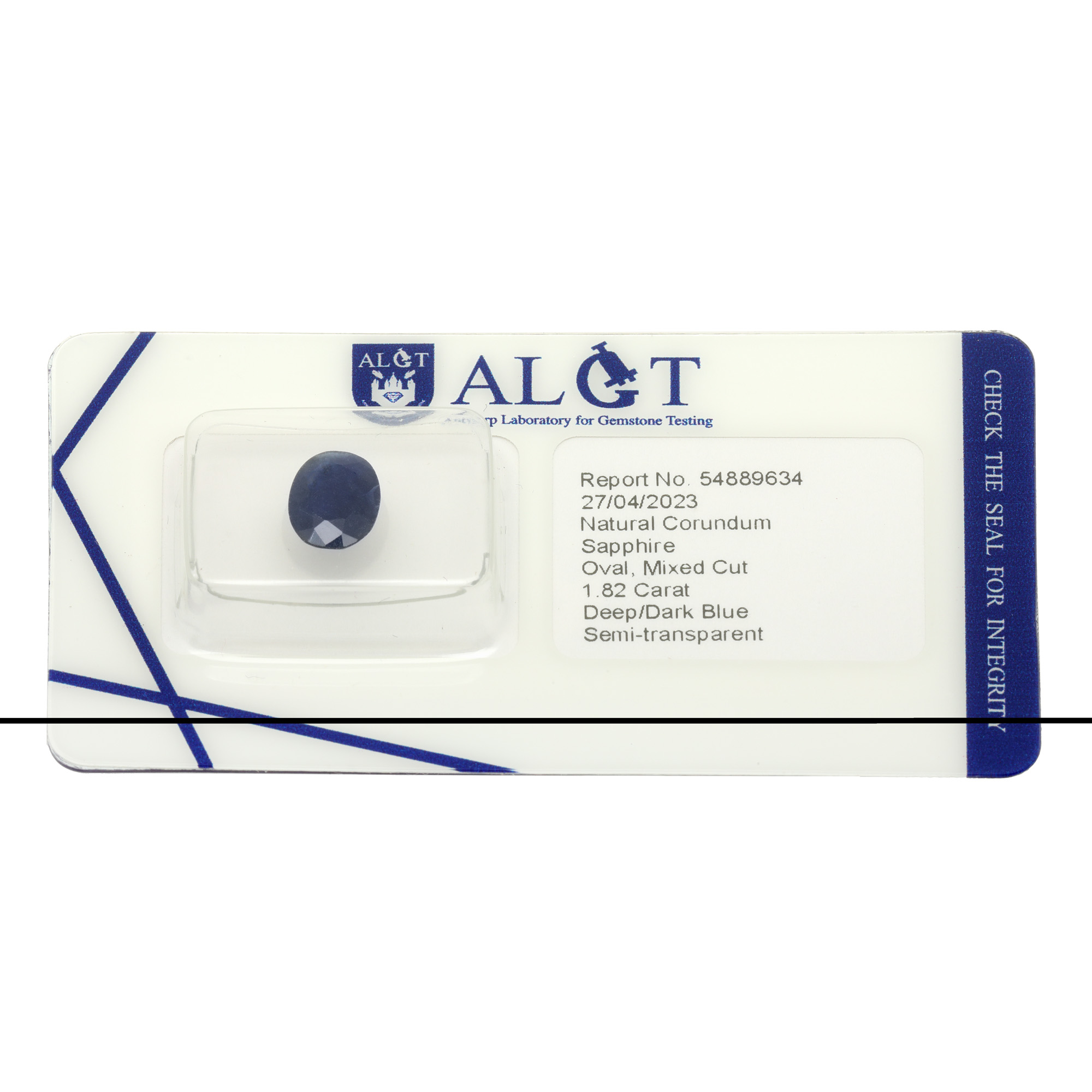 38. Safir oval de culoare deep/dark blue, 1,82 ct., însoțit de certificat gemologic ALGT