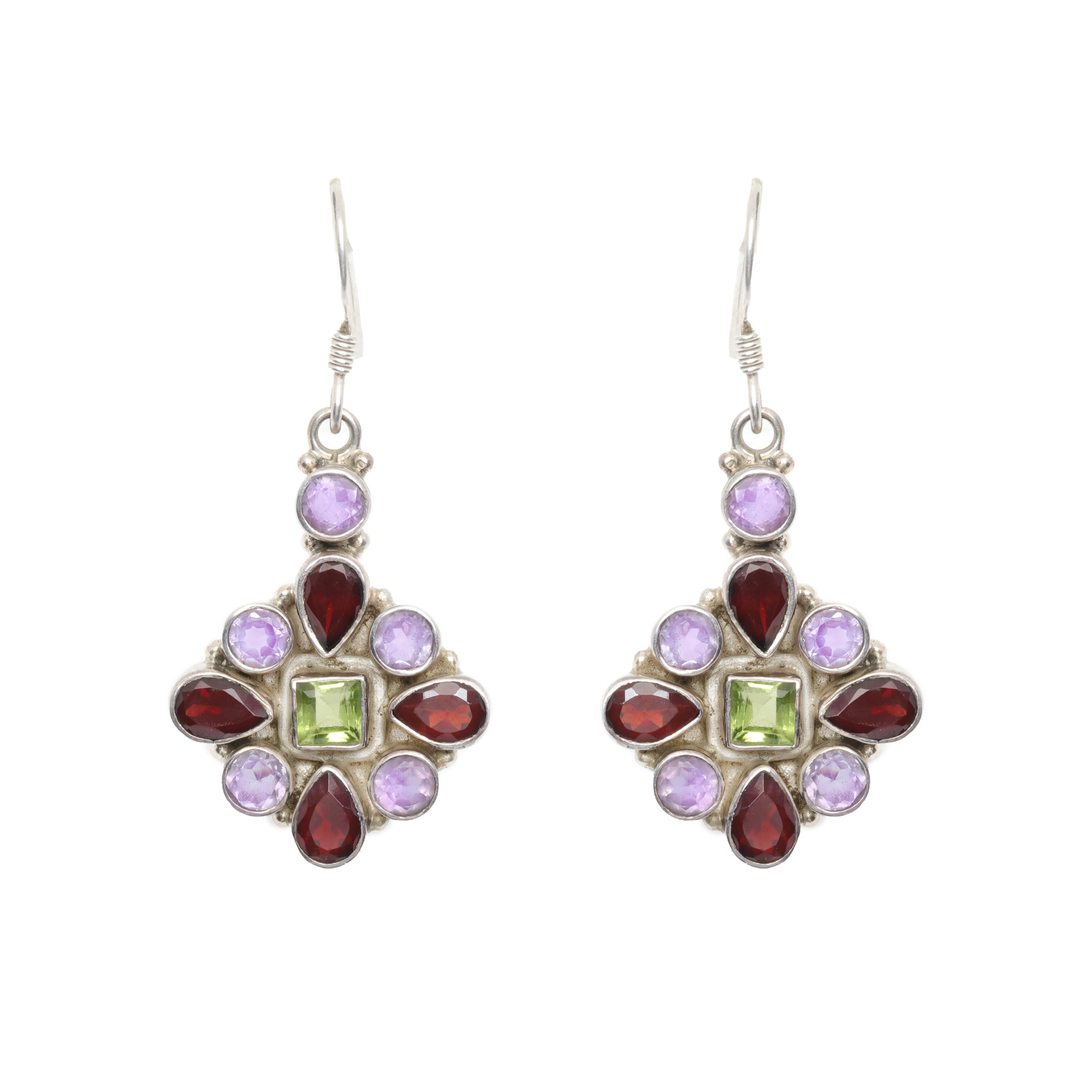 4. Set format din lanț cu pandantiv și pereche de cercei din argint, decorat cu ametiste, granate și peridote
