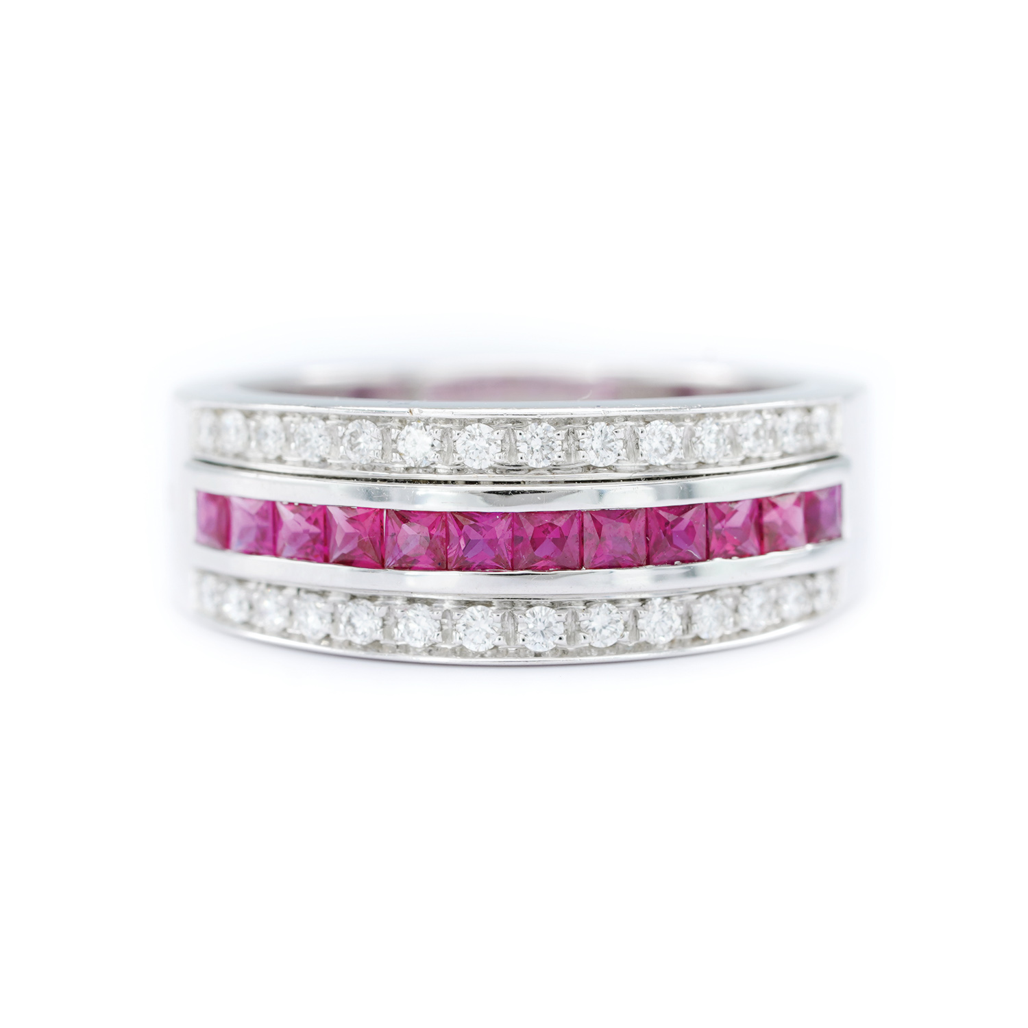 35. Salvini Ring of White Gold, Decorated with Rubies and Diamonds