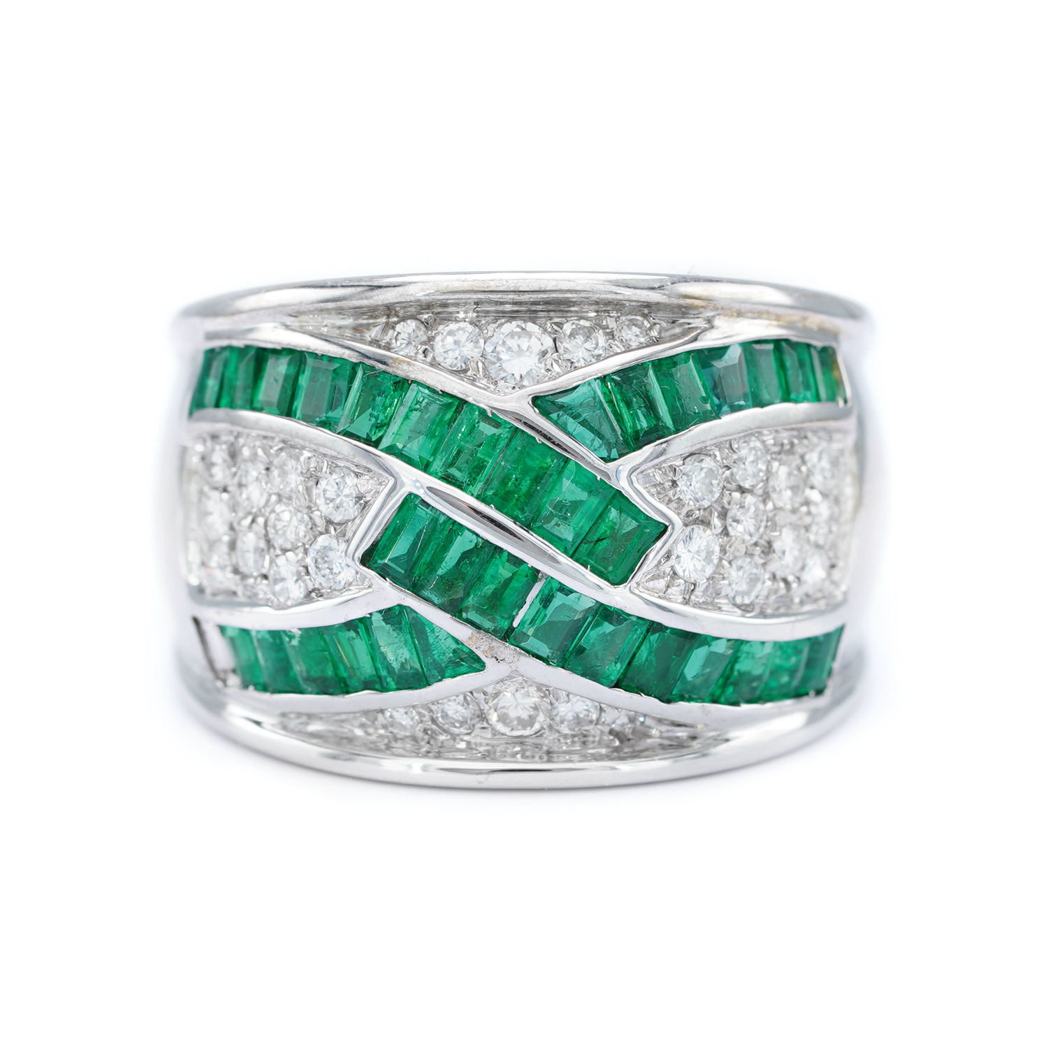 25. UnoAErre White Gold Cocktail Ring, decorated with Baguette Emeralds and Diamonds