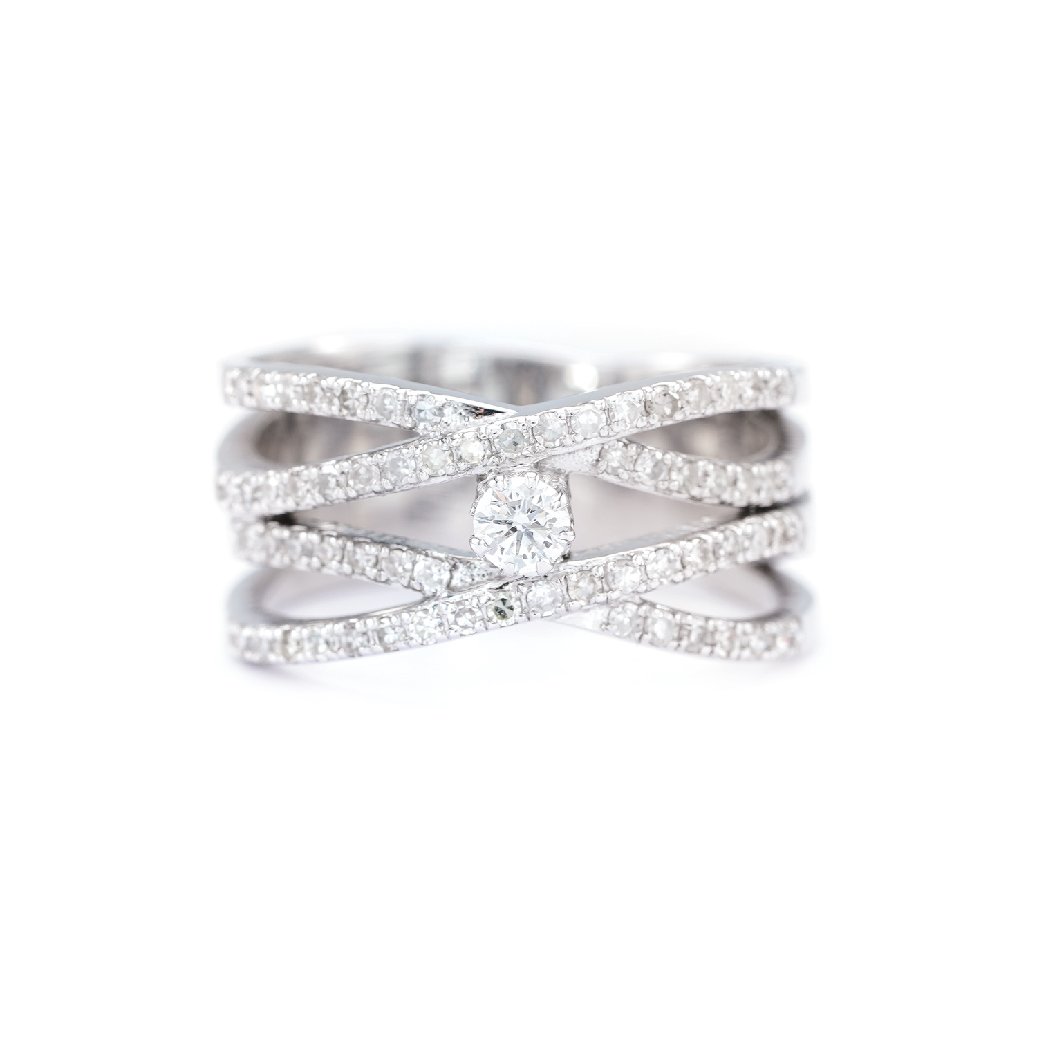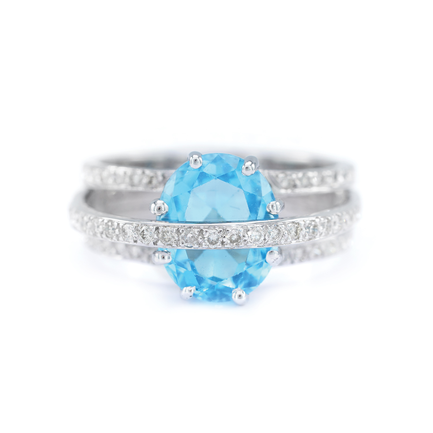 28. White Gold Ring, Decorated with Topaz and Diamonds