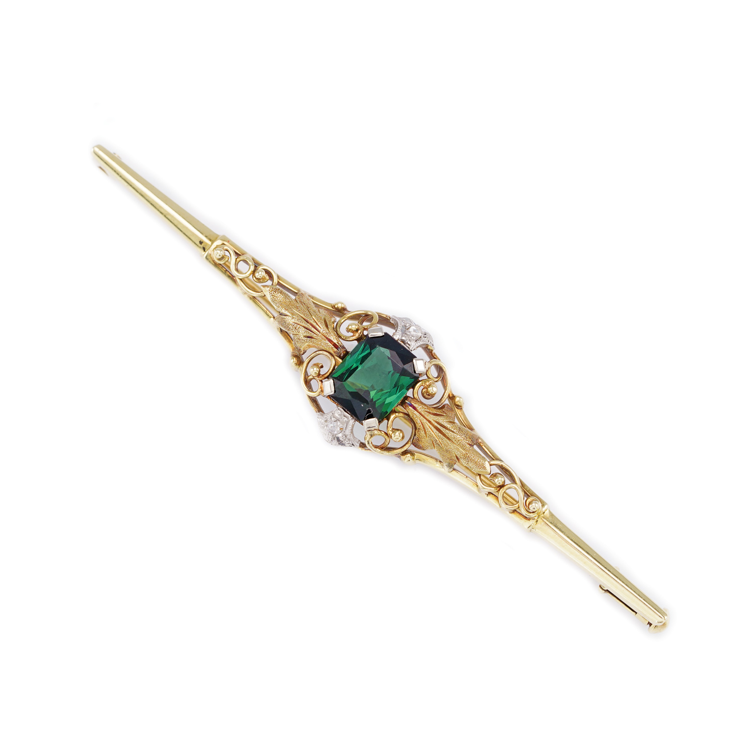 30. Gold and Platinum Brooch Decorated with Tourmaline and Diamonds, Early 20th Century