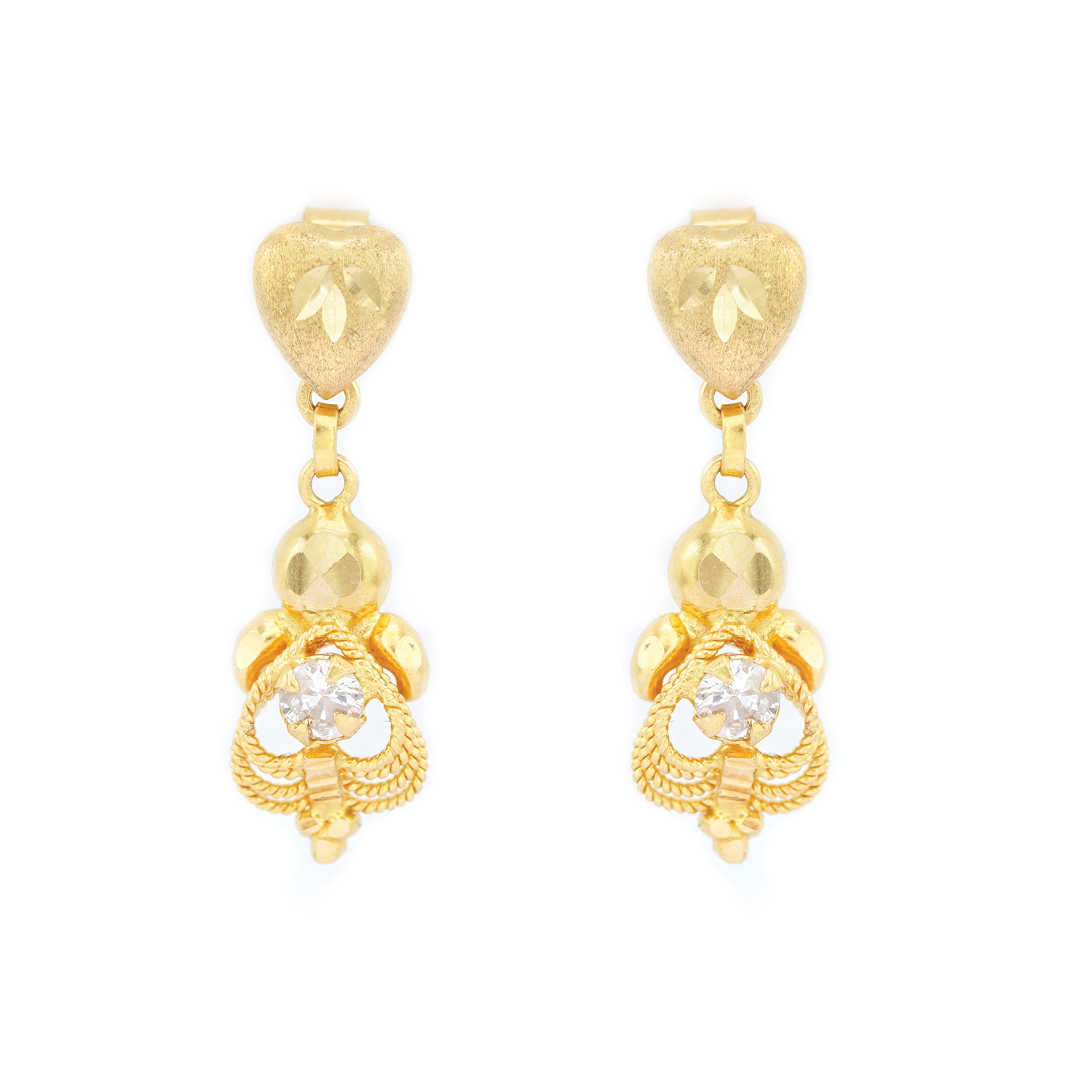 1. A pair of heart-shaped gold earrings, adorned with diamonds