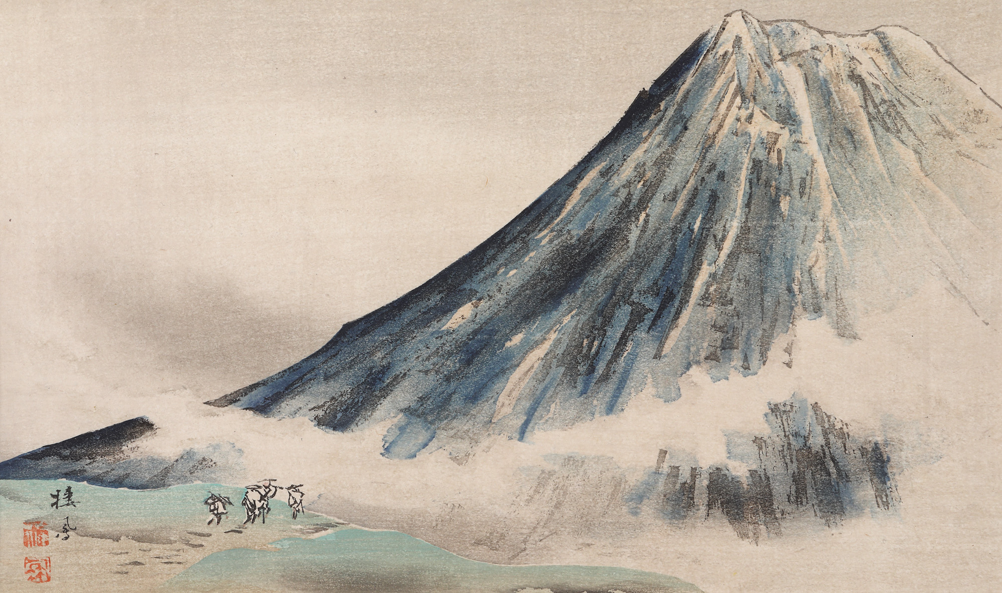 42. Muntelui Fuji (zărit) printre nori, din seria ”Cele 12 priveliști ale muntelui Fuji” [cca. 1894]