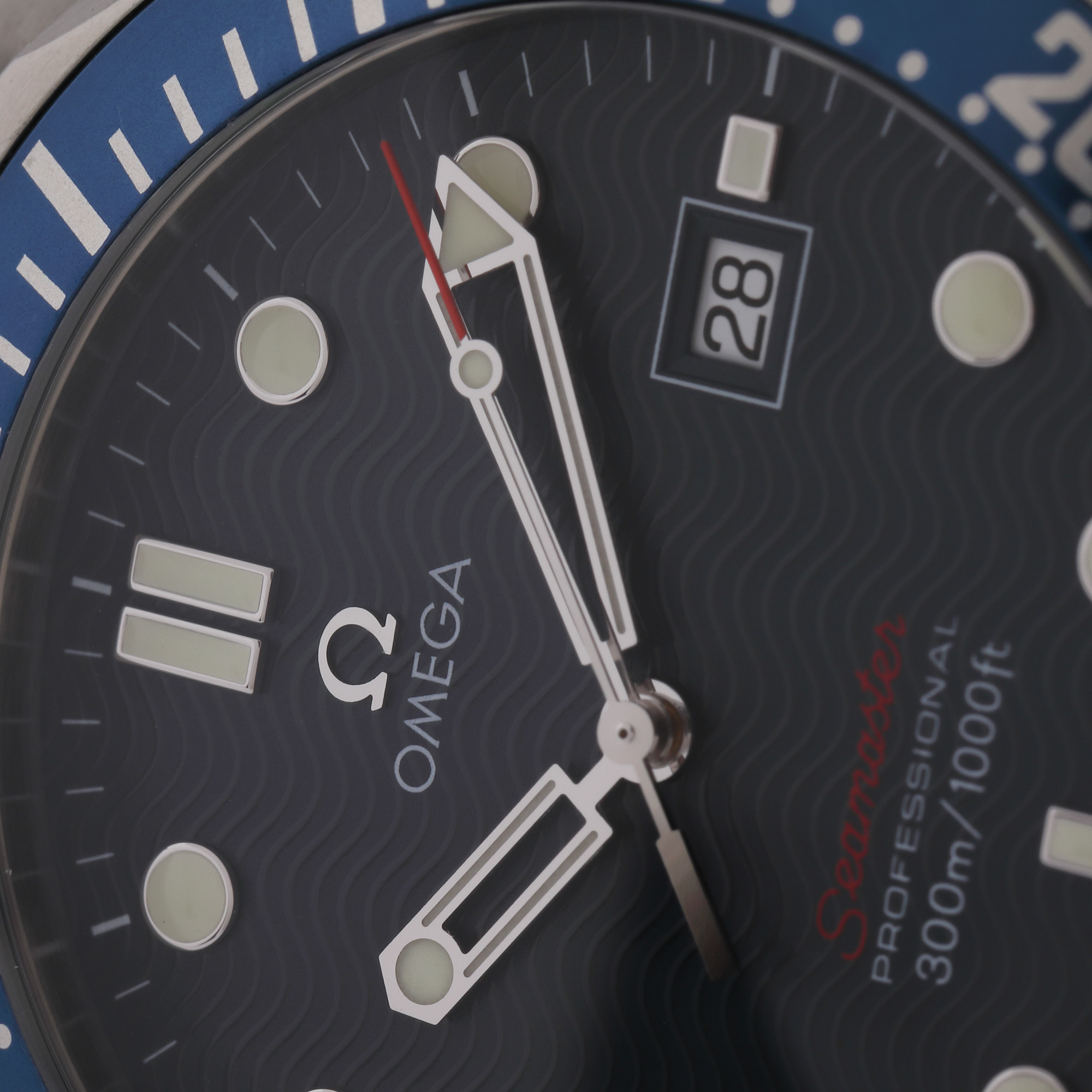 Ceas Omega Seamaster, de mână, bărbătesc, referință 2221.80.00, mecanism quartz. Cadran decorat cu ”wave pattern”, indicatori orari luminiscenți și registru pentru dată în dreptul orei 3. Brățară și sistem de închidere tip deployant, originale. Acest model Omega Seamaster a fost purtat de celebrități precum Prințul William ducele de Cambridge și Daniel Craig.