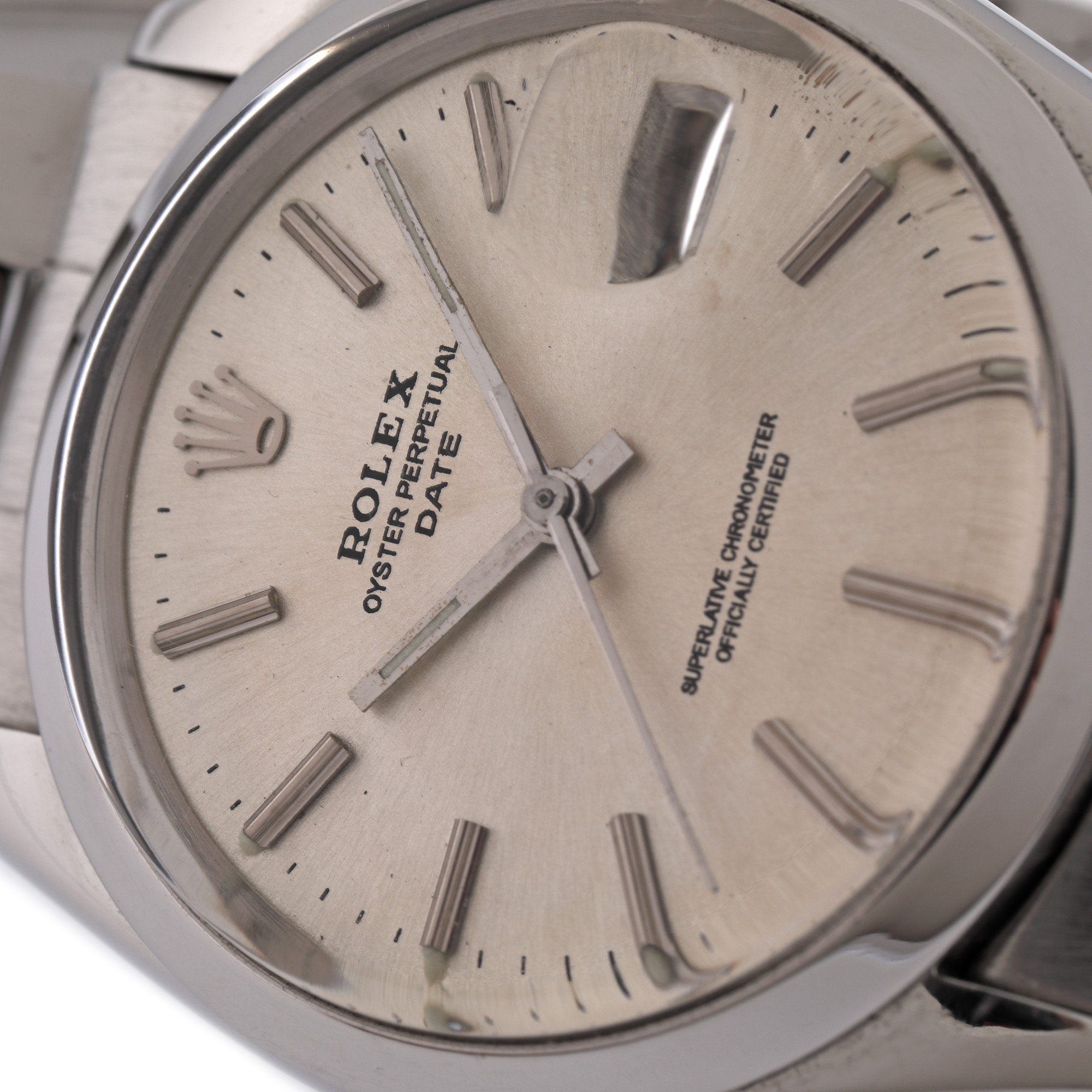 Ceas Rolex Oyster Perpetual Date, de mână, unisex, referință 1500, mecanism automatic. Cadran de culoare cold gray și dată cu lupă în dreptul orei 3. Brățară și sistem de închidere tip deployant din oțel, originale.