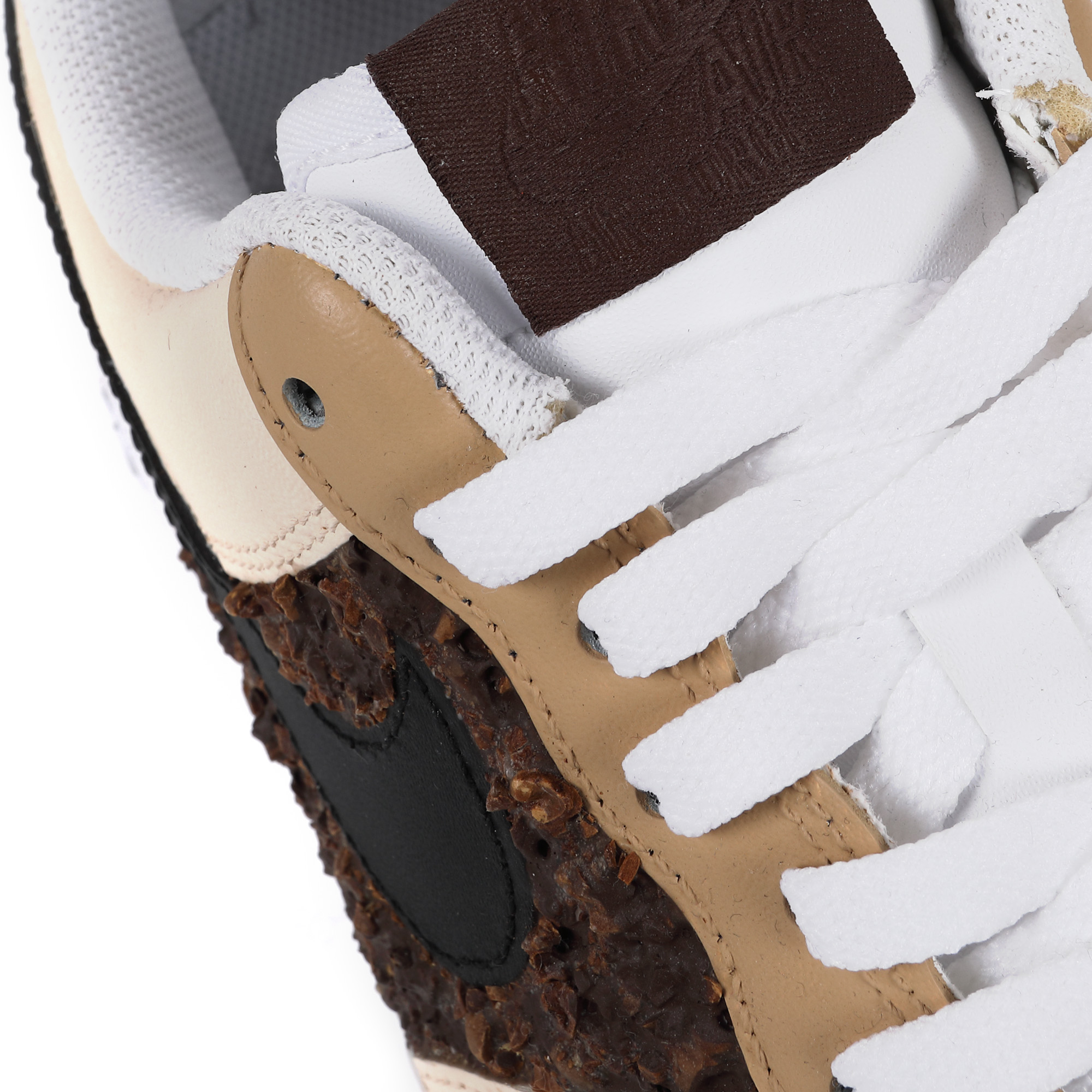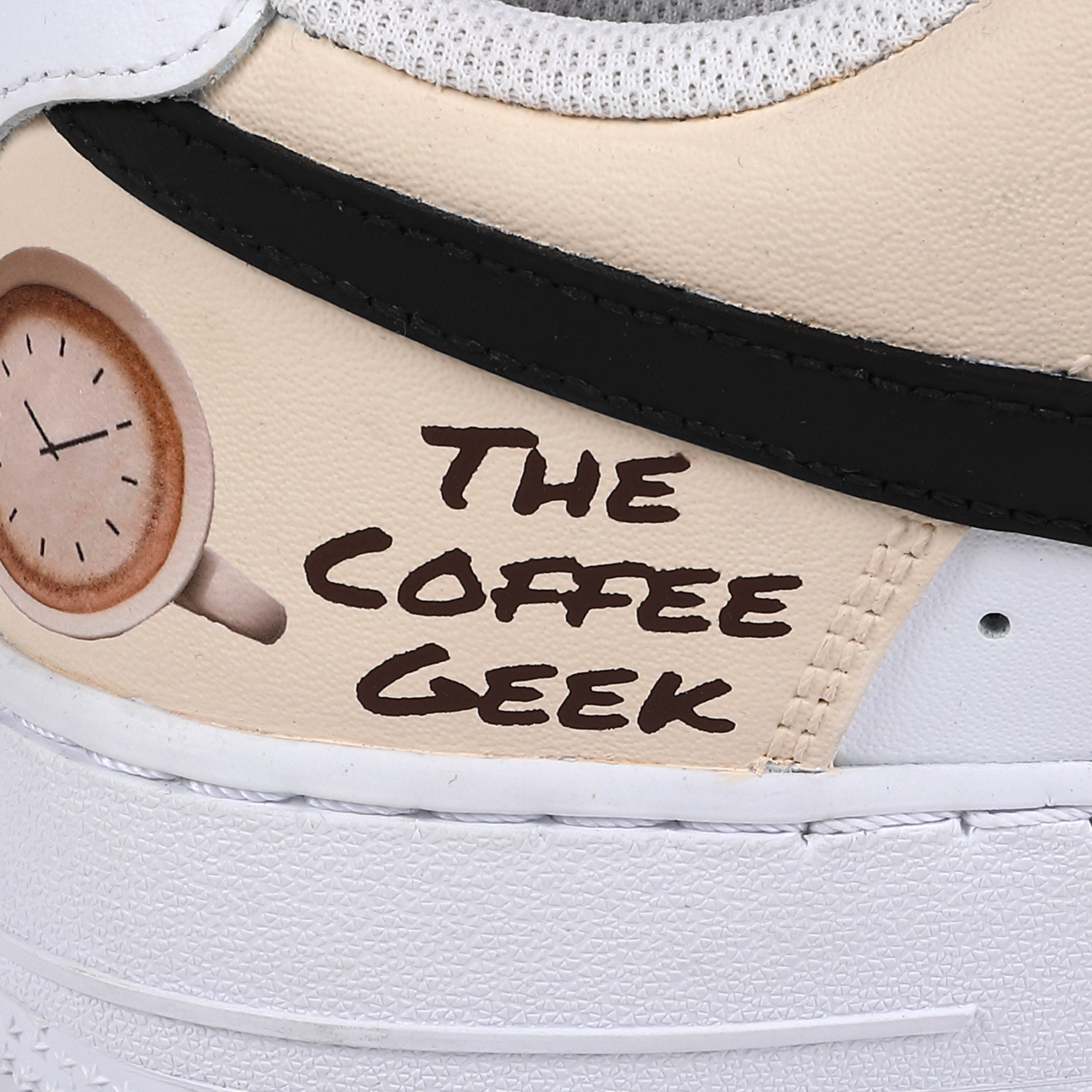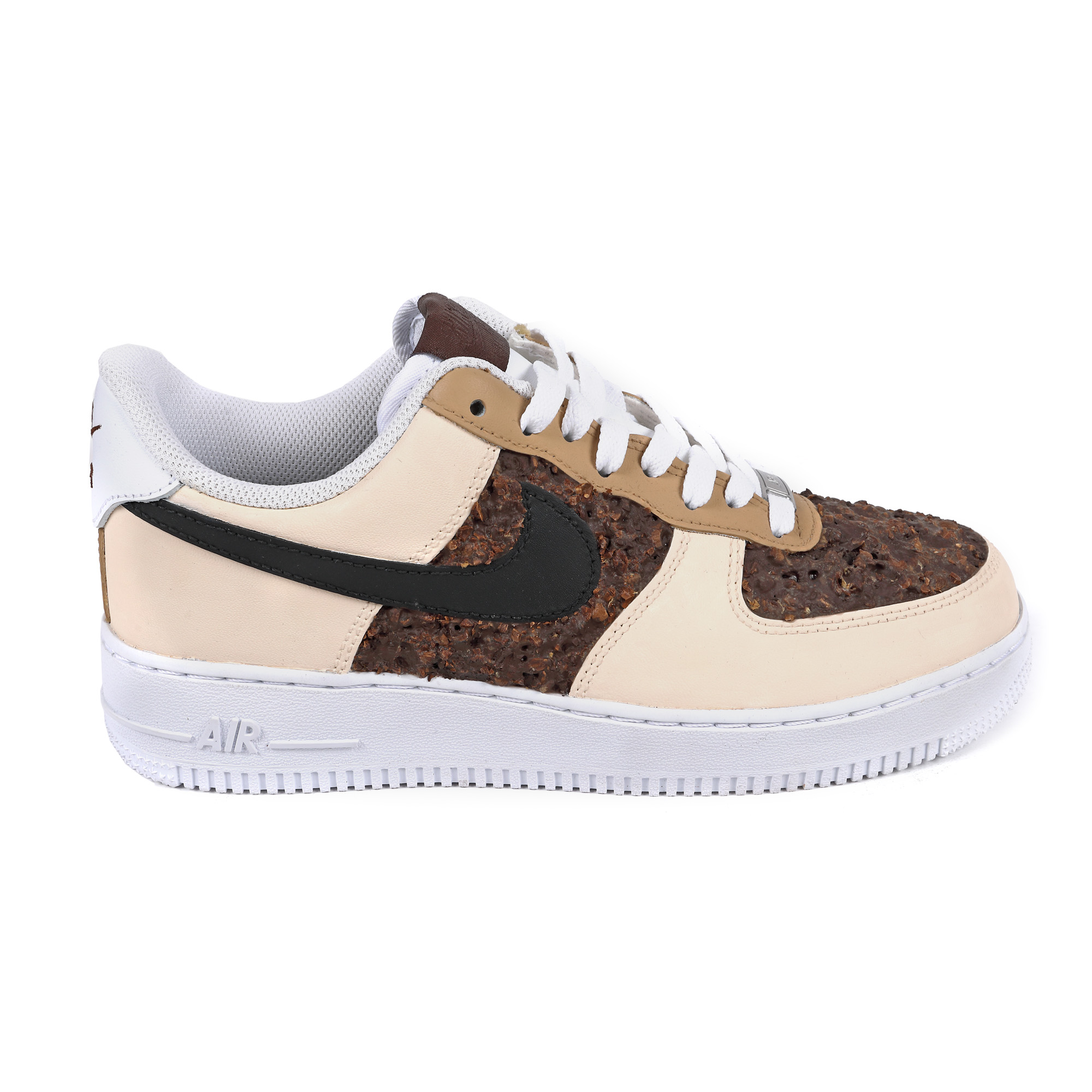 boabe de cafea măcinate, boabe de cafea sparte, latex lichid, pigment și vopsea acrilică pe Nike Air Force 1 low triple white