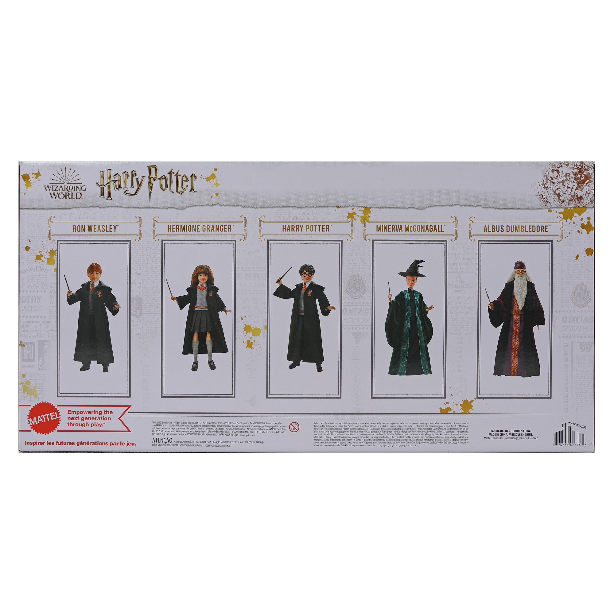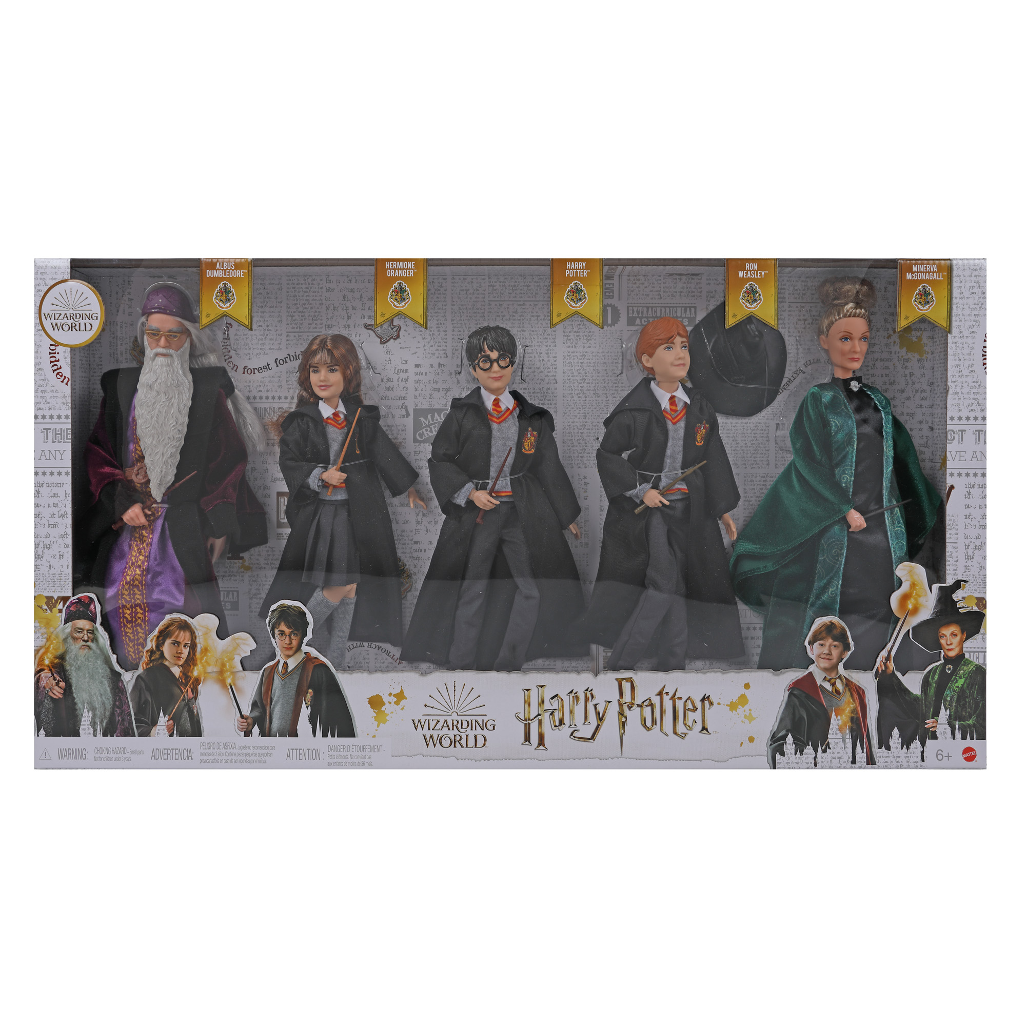 Intrați în universul magic al lui Harry Potter prin aceste cinci figurine: Harry Potter, Ron Weasly, Hermione Granger, Albus Dumbledore și profesoara McGonagall. Fanii, dar și colecționarii deopotrivă, vor descoperi plăcerea de a recrea poveștile și aventurile lui Harry Potter și ale prietenilor săi.