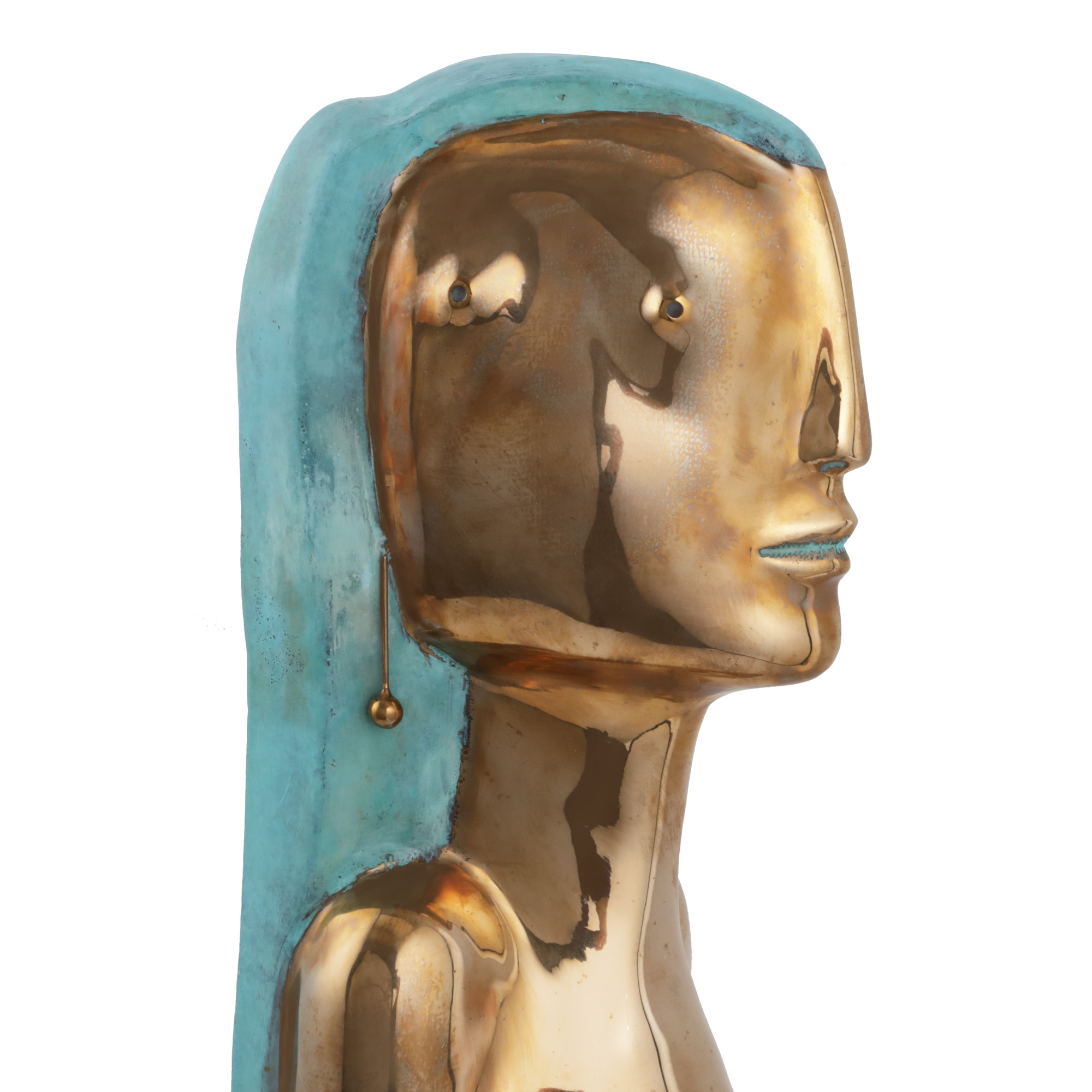 Felix Aftene nu se rezumă la a-și transpune pe suprafețe plane propriul microcosm, unde coabitează toate semnele de întrebare și răspunsurile laolaltă, sub forma unor personaje mitice ce își celebrează existența prin diverse manifestări, ci dimpotrivă. Artistul alege să elibereze selectiv câte unul din protagoniștii scenetelor sale cu caracter hieratic, cimentând specificul simbolic al acestora și construind, de fapt, un discurs în oglindă prin metamorfozarea lor la tridimensionalitate. Urmărind să dezvăluie complexitatea ființei umane, Felix Aftene își proiectează figurile sale deificate grație intervenției stilistice sugestive, din universul pictural limitat de cadrul unei pânze prinse pe șasiu către contextul în care posibilitățile de modelare a materiei devin infinite. Albastrul recurent în picturile sale, nu ezită să își facă apariția și pe suprafața neregulată a sculpturilor. Printr-un efect special de oxidare a bronzului, artistul conturează anumite trăsături ale personajului, alcătuind un joc de texturi și contraste. Culoarea și textura bronzului oxidat se regăsesc sincronic în compozițiile plastice și în sculpturile lui Felix Aftene, devenind astfel mărci stilistice ale propriei opere.