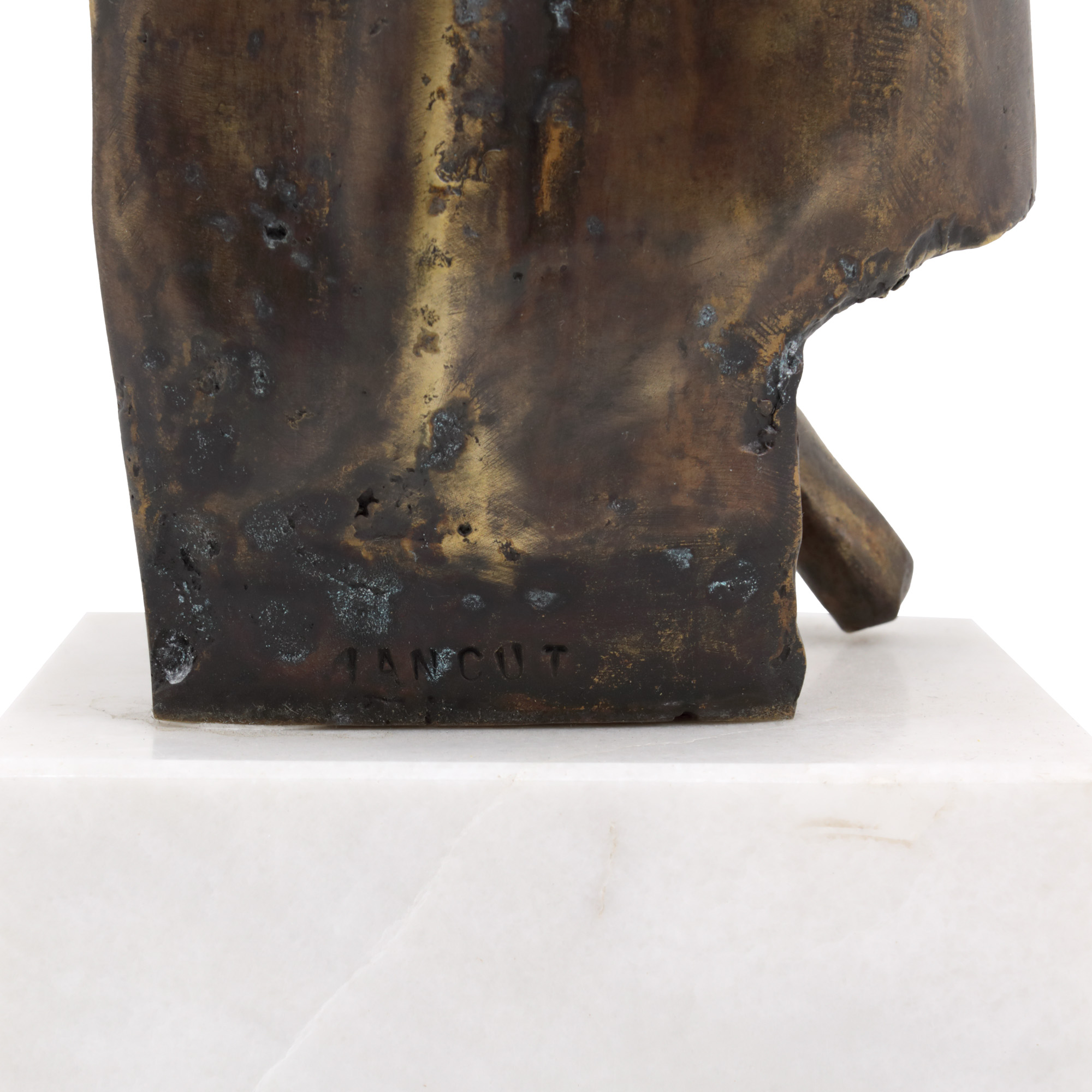 semnat la baza sculpturii, pe spate, ”IANCUT”
