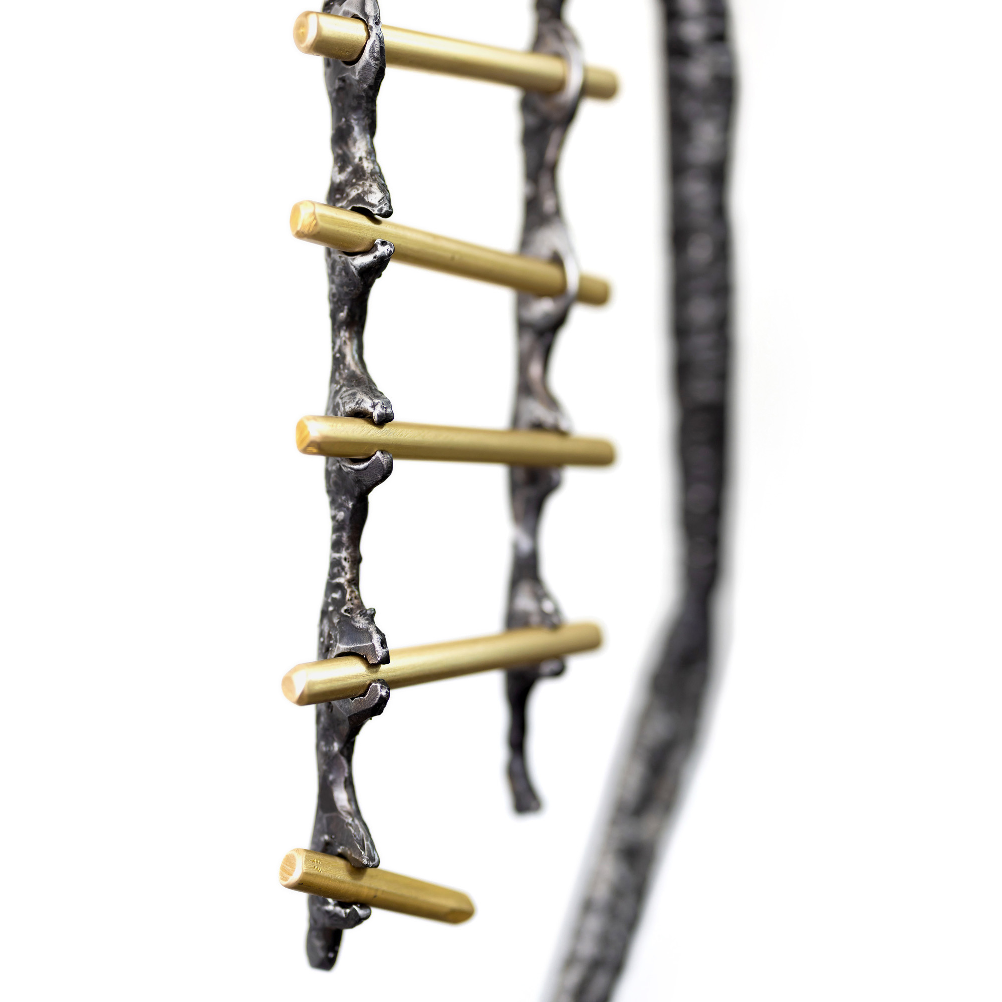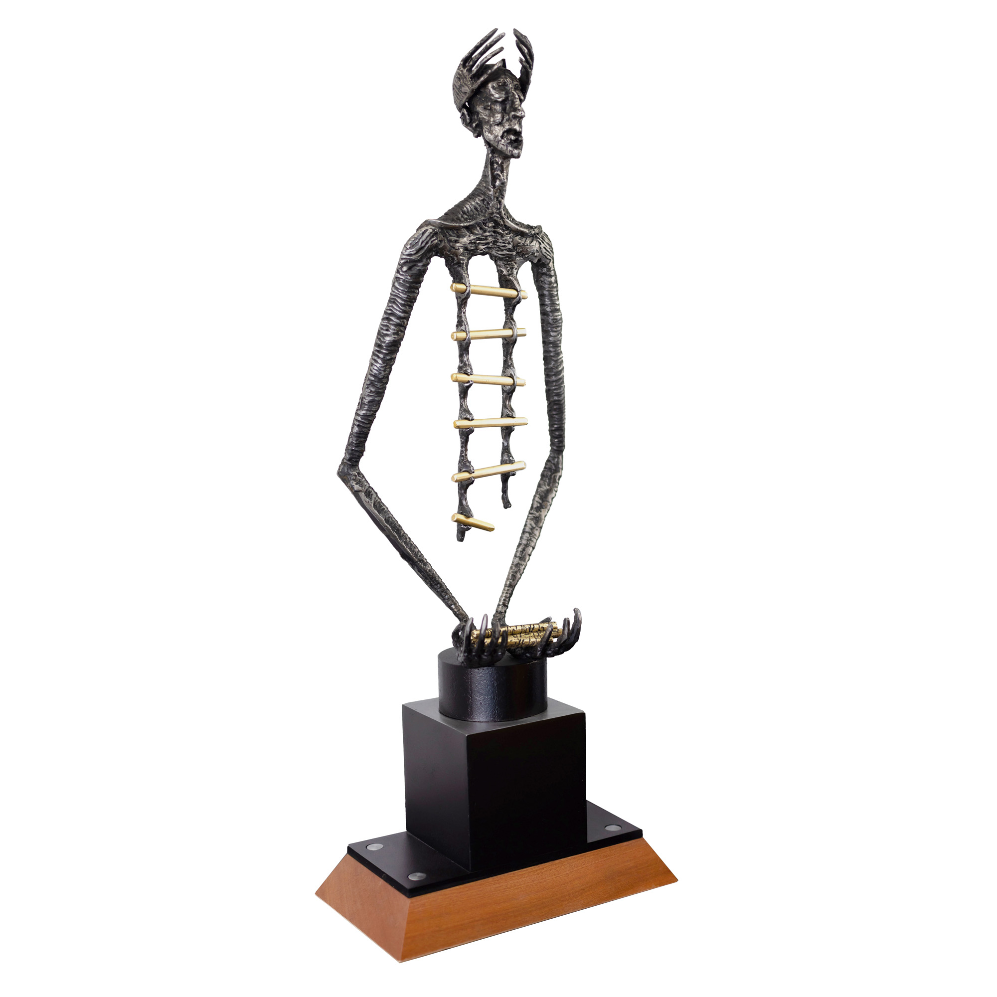 ”O metaforă a vieții lucrată în metal, sculptura te invită într-o călătorie introspectivă prin labirintul propriei ființe. Trecutul, prezentul și viitorul se contopesc într-o simbioză armonioasă, reflectând continuitatea vieții și modul în care ne construim propria poveste. Baza din lemn de cedru, robustă și stabilă, oferă un fundament solid pentru această ascensiune personală. ”Realizată manual prin sute de straturi de oțel topit, SELFSCAPE este o dovadă a perseverenței și dedicării. Treptele din bronz ale sculpturii, simbolizează experiențele care ne-au modelat, urcușurile și coborâșurile ce ne-au definit. Sculptura este o oglindă a sinelui nostru, prin ea, ne contemplăm propriul drum, ne celebrăm victoriile și învățăm din eșecuri. Este o invitație la introspecție, o meditație asupra timpului care ne-a format și a destinului ce ne așteaptă. Semnătura, gravată pe interiorul cubului de oțel, conferă o notă personală și intimă sculpturii. Este că o șoaptă din adâncul sufletului, o amprentă a creativității și a emoției investite.”