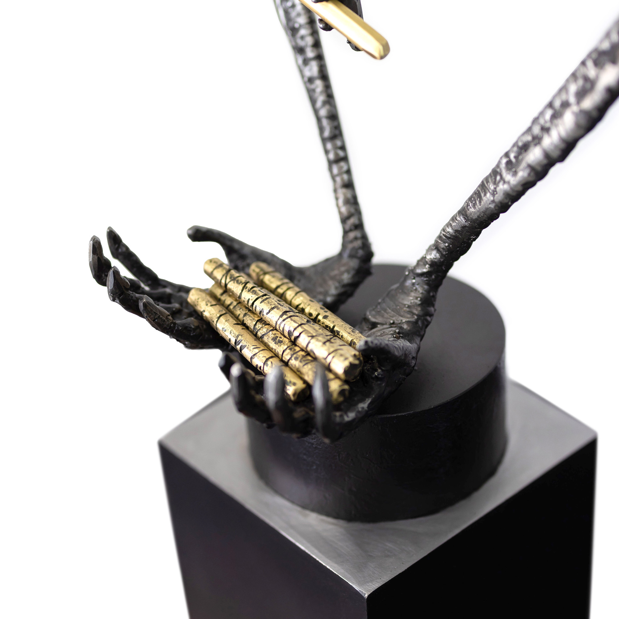 oțel și bronz cu postament din lemn de cedru, adaos din straturi de oțel