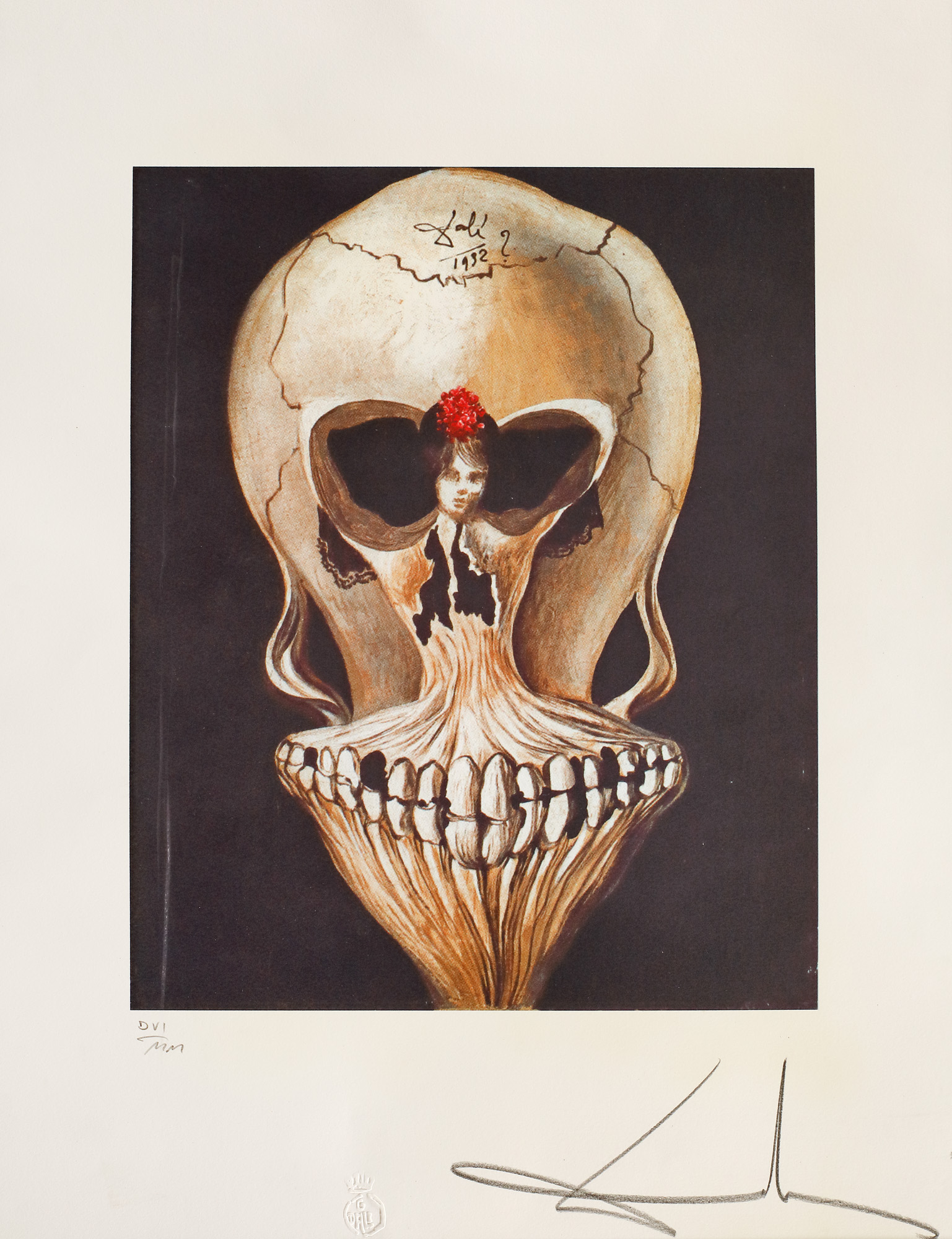 semnat și datat, gravat central sus, în placă, ”Dali, 1932”; semnat dreapta jos, sub cadru, în cărbune, "Dali"; numerotat stânga jos, sub cadru, în creion, "DVI/MM"; stânga jos, sub cadru, ştampila editurii, "G. Dali"