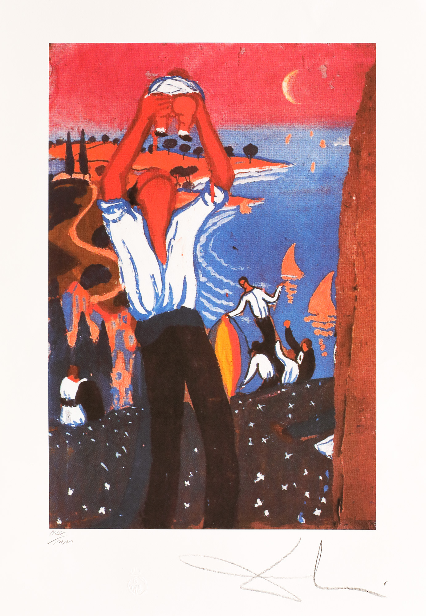 semnat dreapta jos, sub cadru, în creion, "Dali"; numerotat stânga jos, sub cadru, în creion, "MDX/MM"; stânga jos, ștampila editurii, "G. Dali"