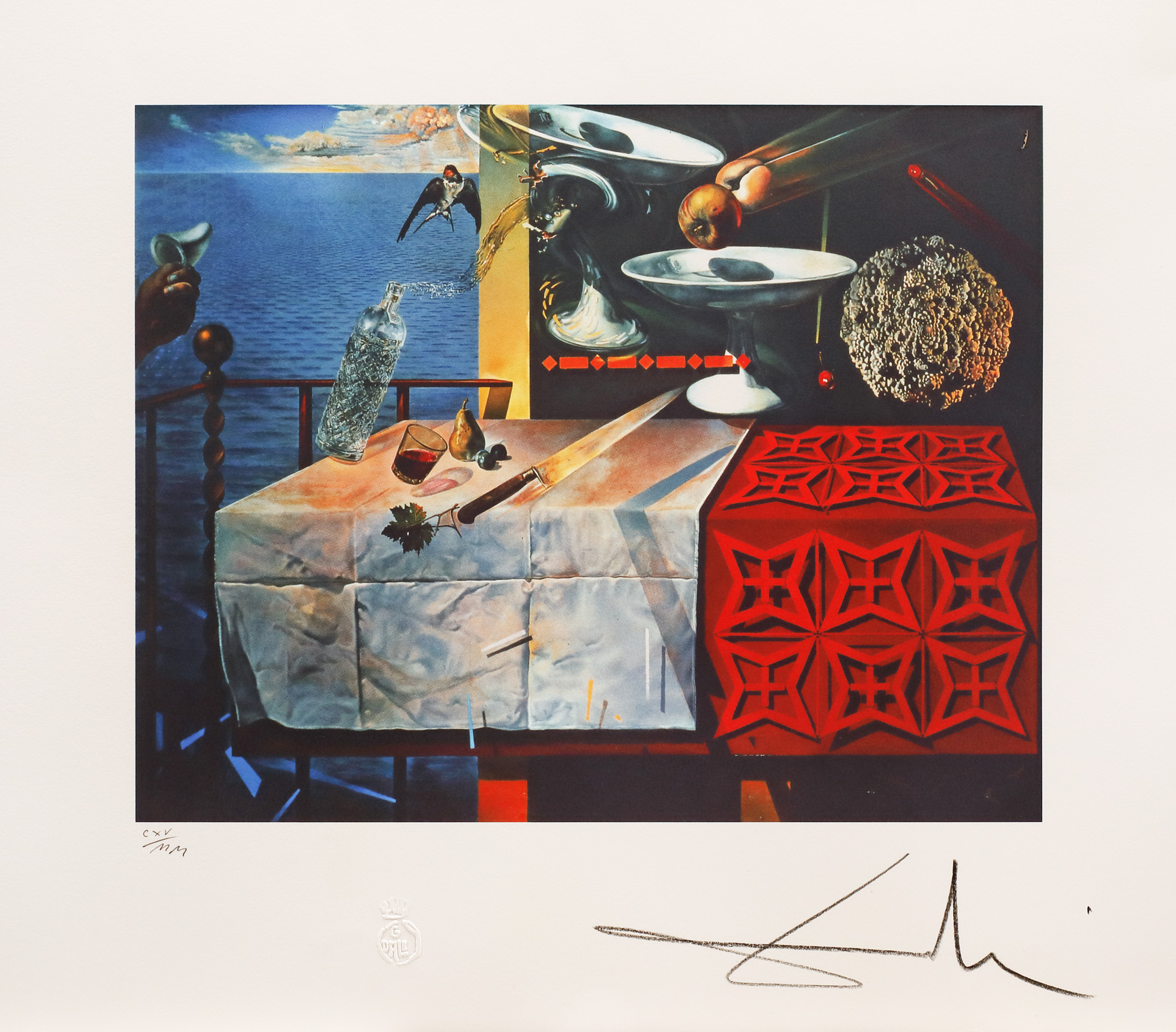 semnat dreapta jos, sub cadru, în cărbune, "Dali"; numerotat stânga jos, sub cadru, în creion, "CXV/MM"; stânga jos, sub cadru, ştampila editurii, "G. Dali"