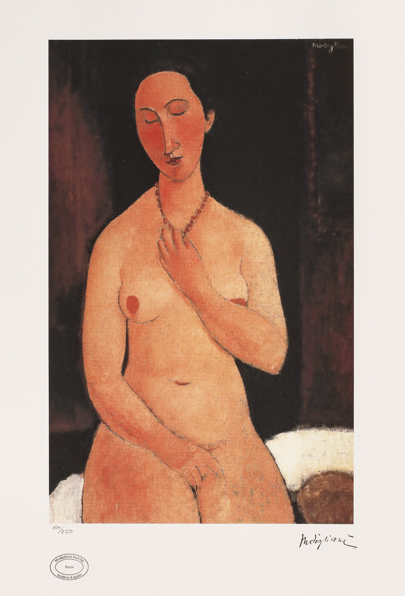 semnat dreapta jos, sub cadru, ”Modigliani”, numerotat stânga jos sub cadru, în creion, "100/ 250"; stânga jos, ștampila editurii, ”Modigliani Institut paris- Archives Legales"