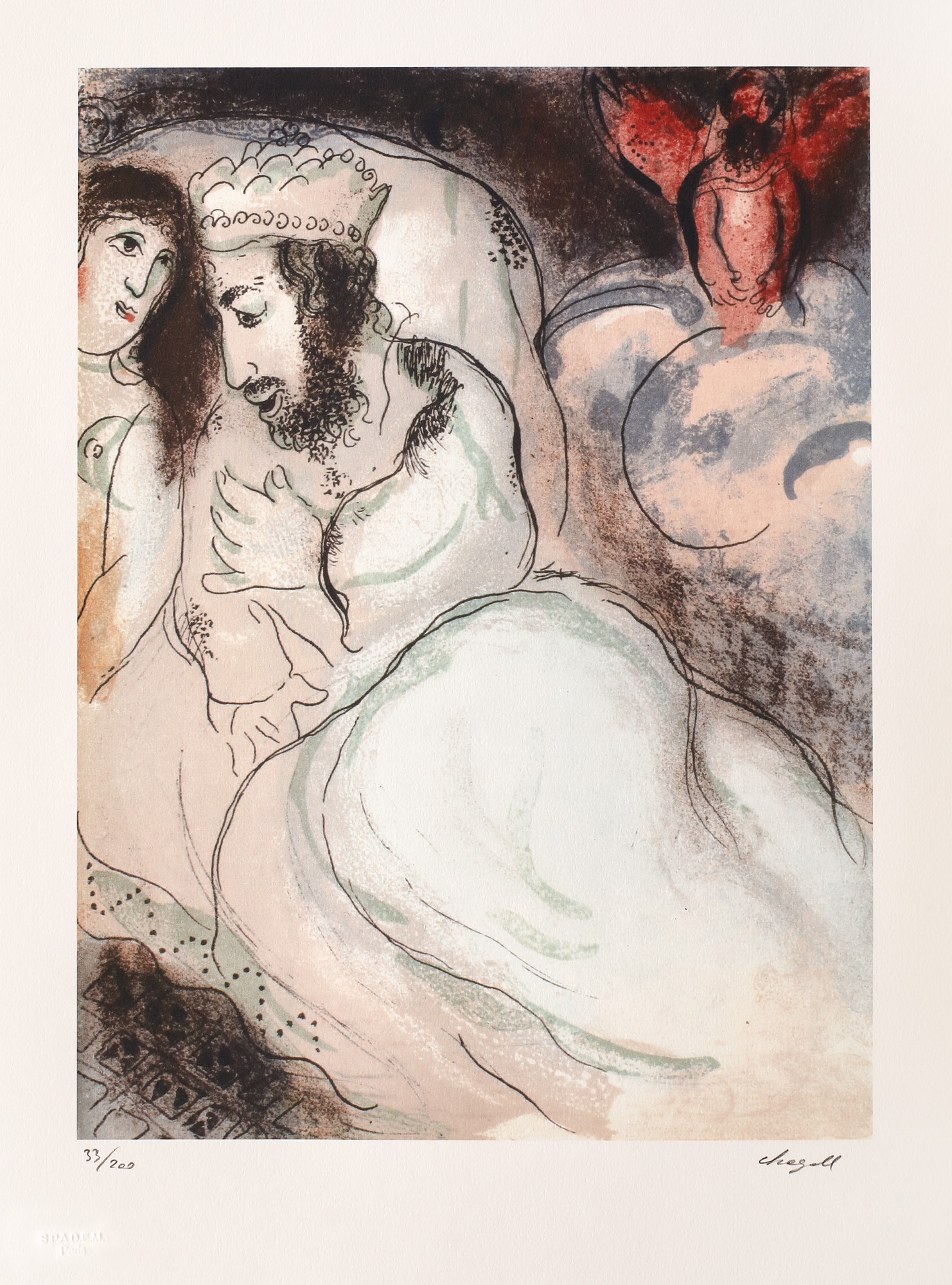 semnat dreapta jos, sub cadru, "Chagall"; numerotat stânga jos, sub cadru, "33/200"