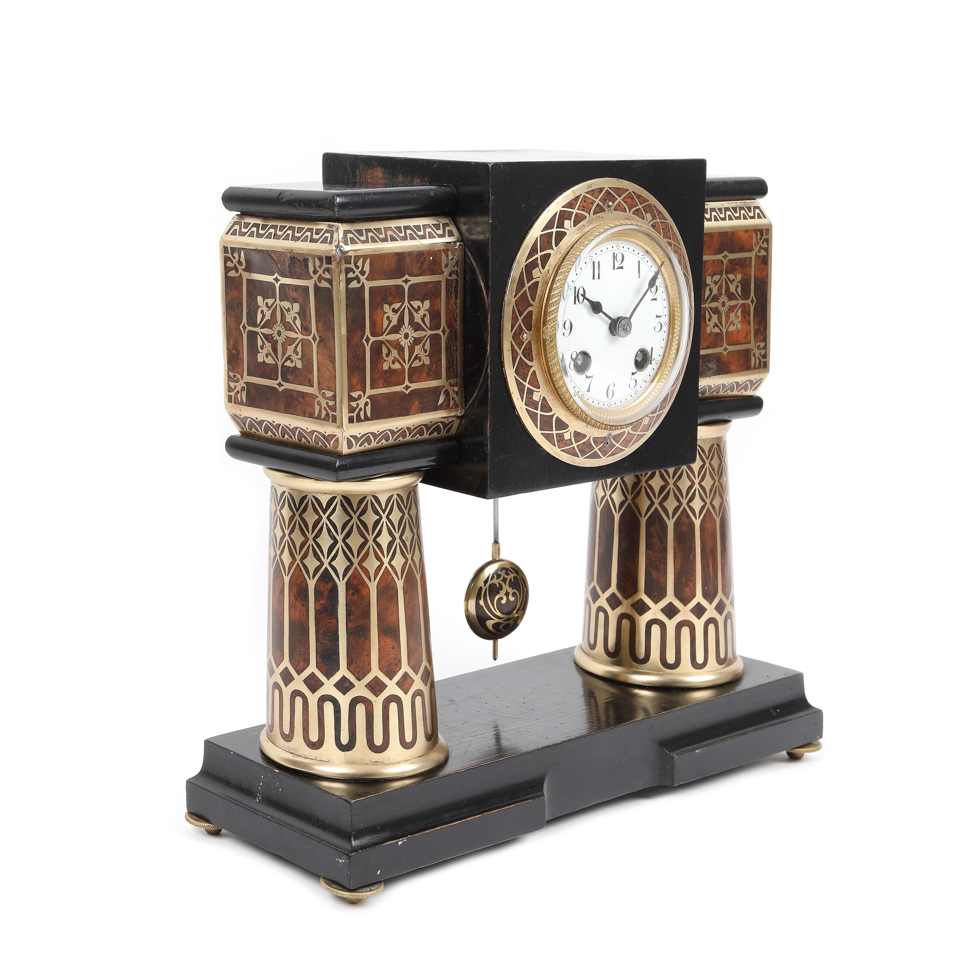 24. Ceas de birou Erhard & Söhne, din lemn lăcuit, cu dedicație pe verso, cca. 1910