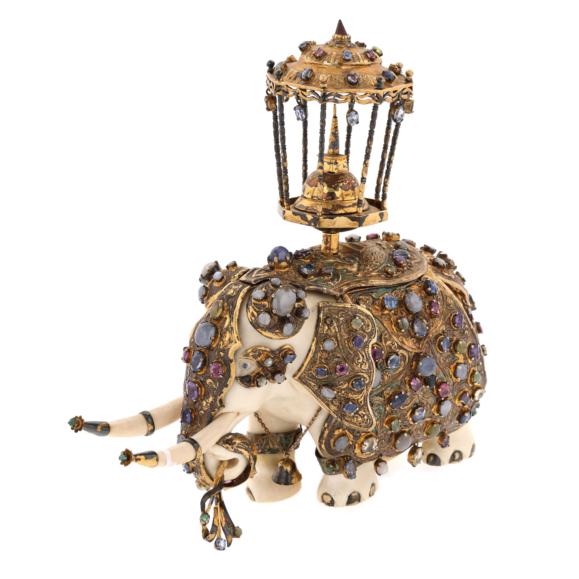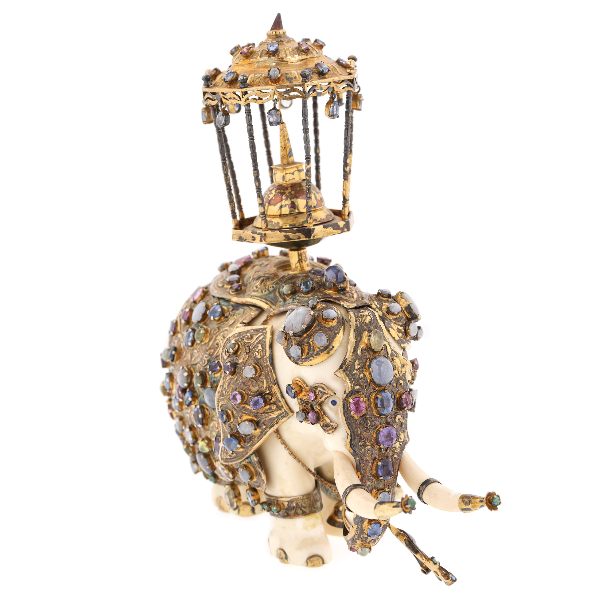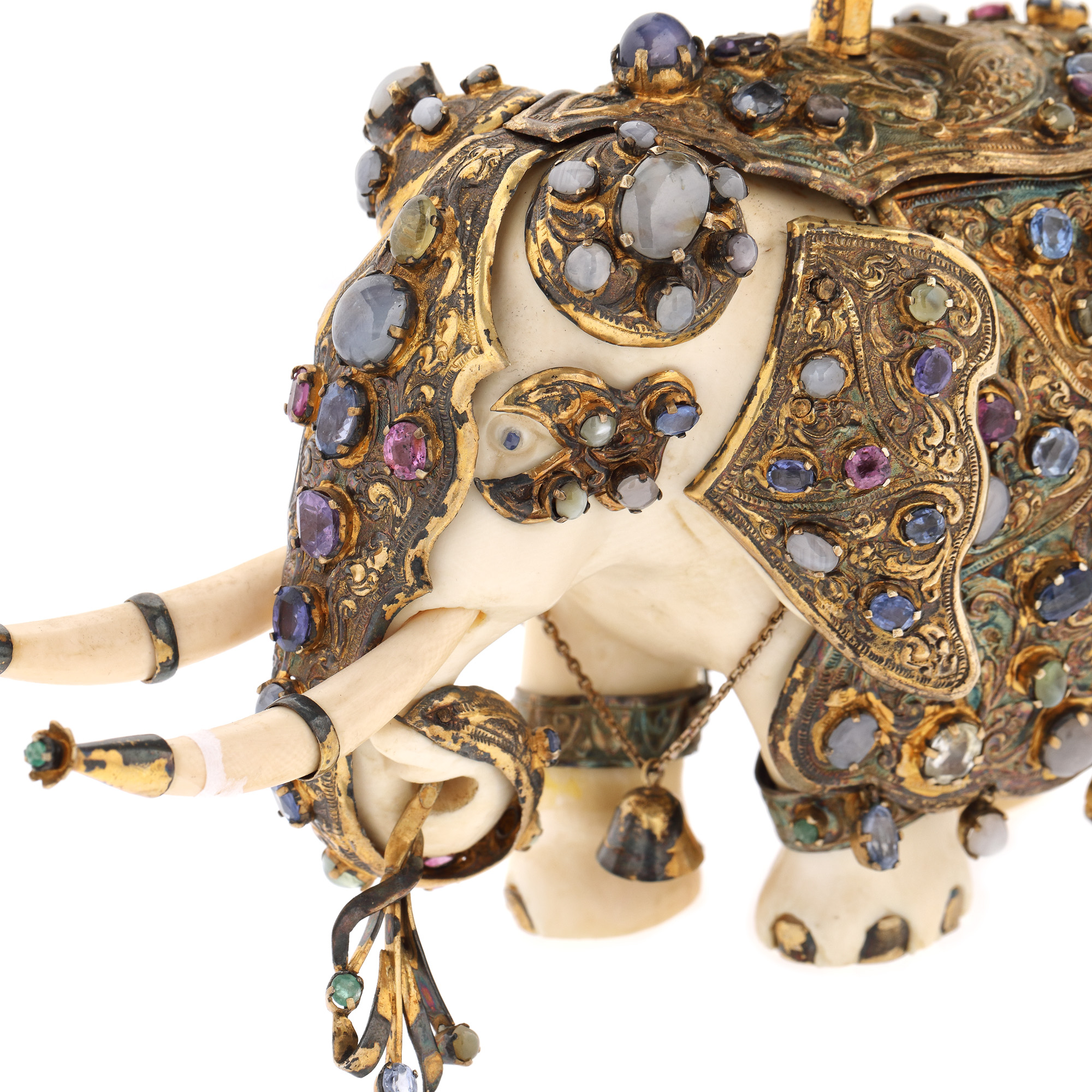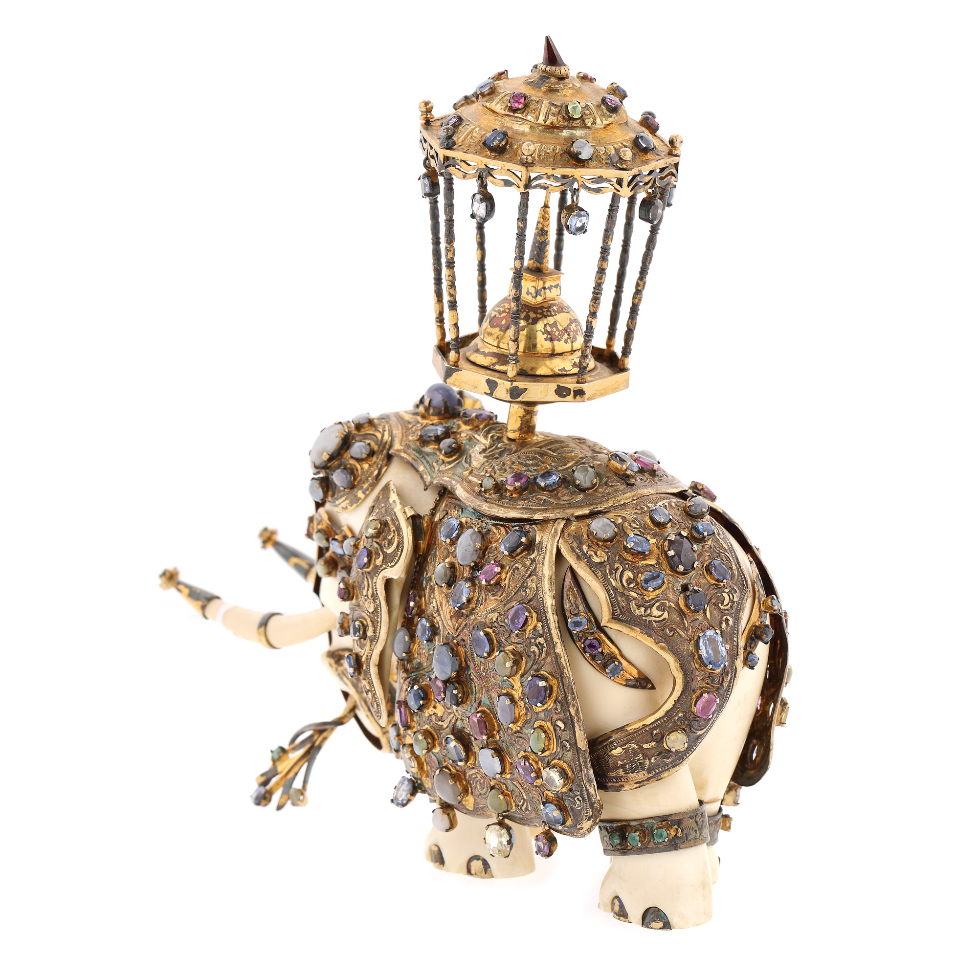 32. Elefant din fildeș, decorat cu pietre prețioase, în stil Mughal [Sec. XX]