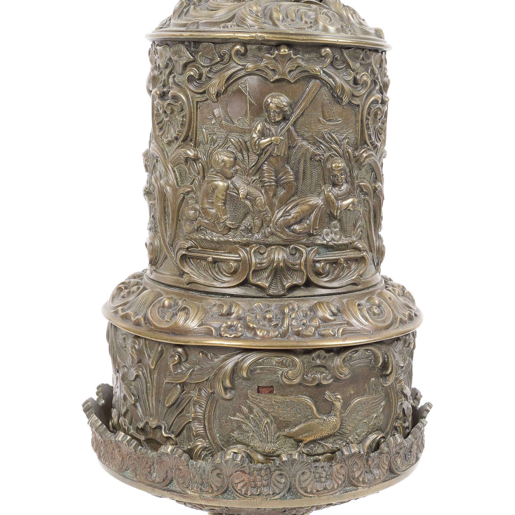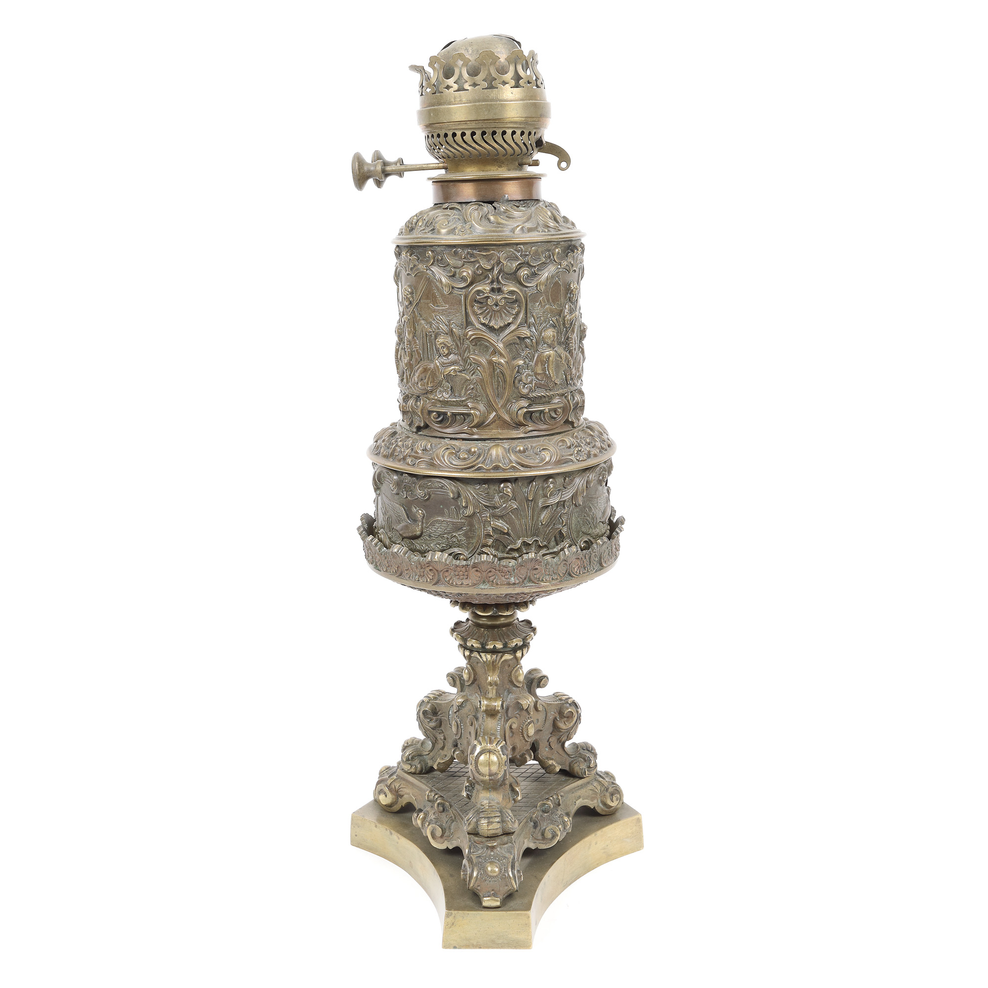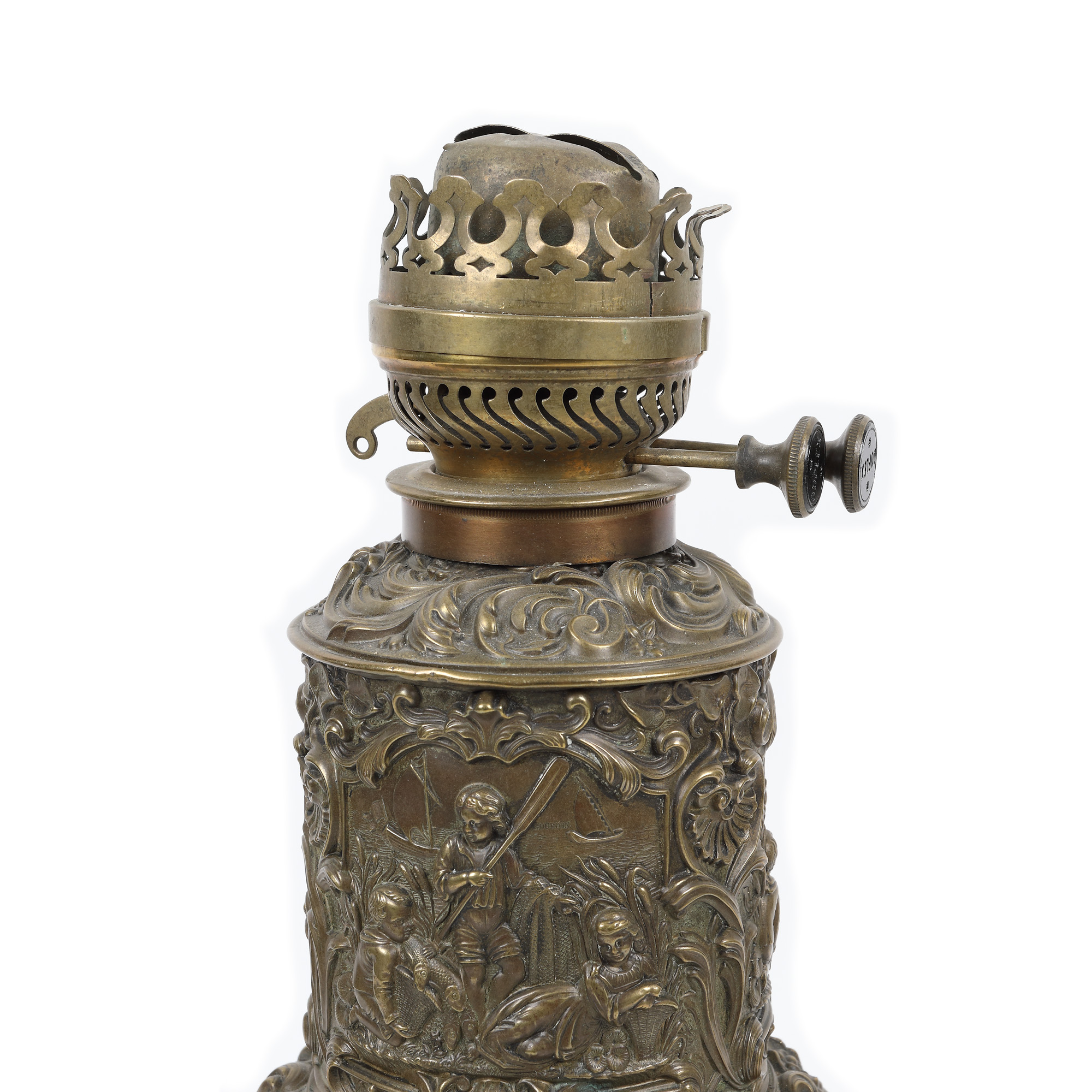 134. Lampă din bronz cu decor figurativ și motive Neo-Rococo, sec. XIX