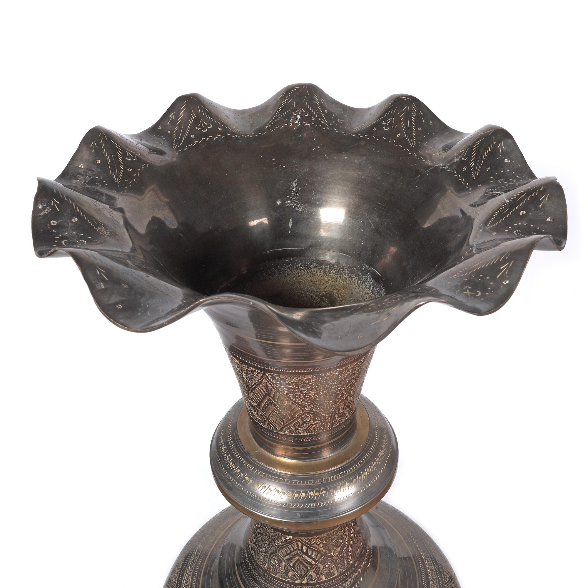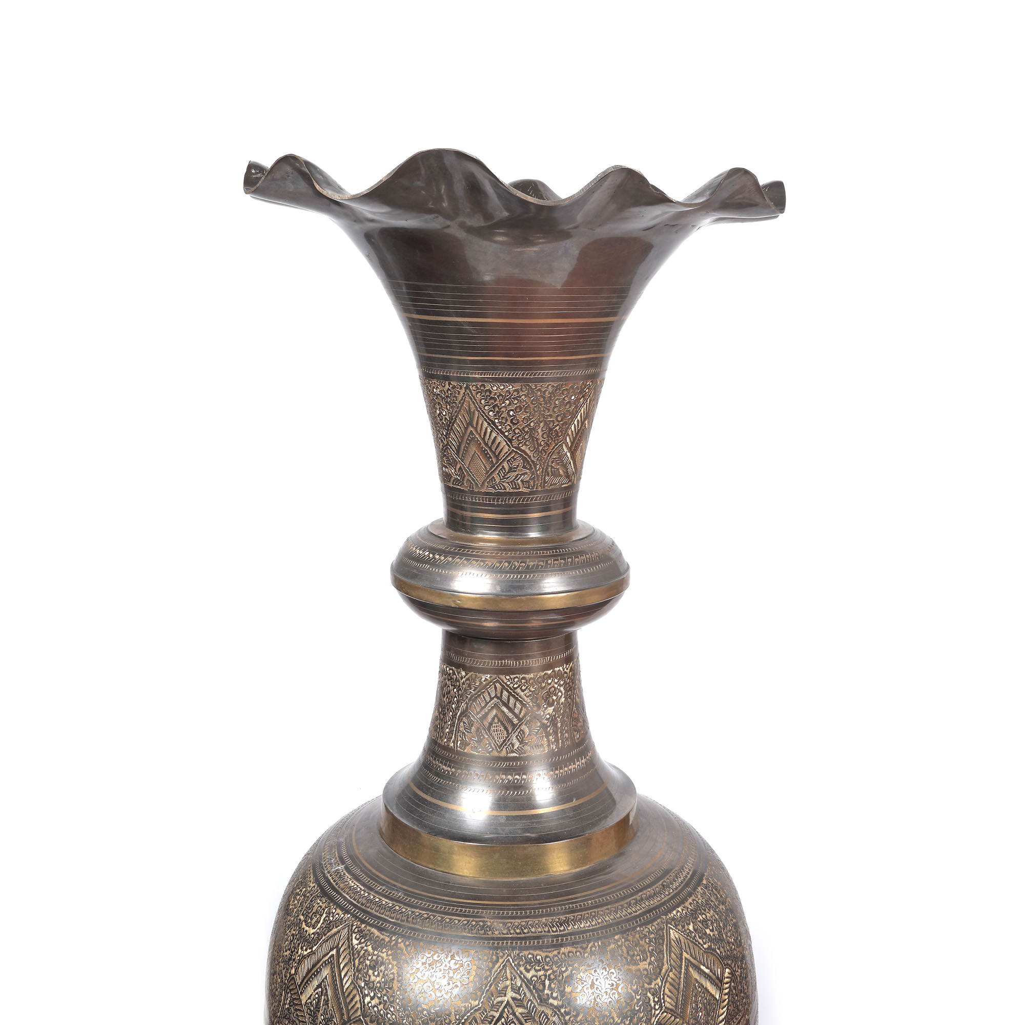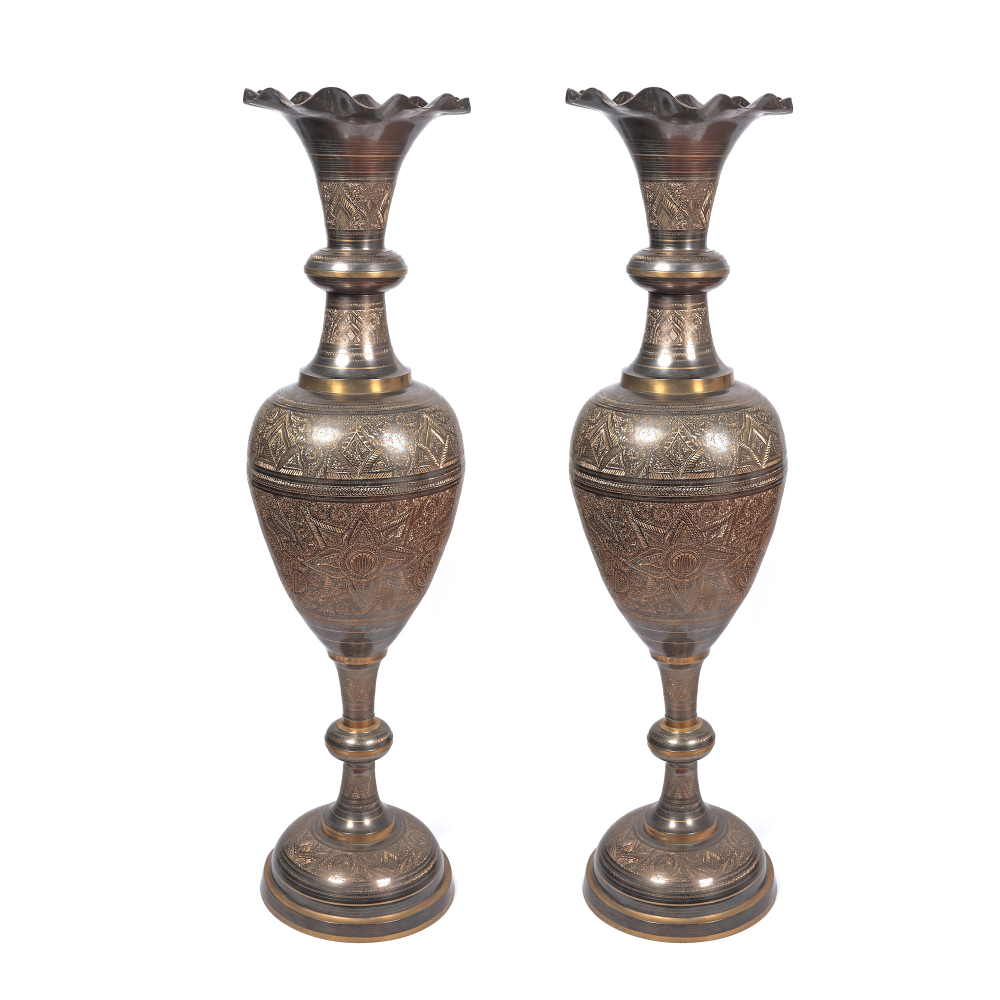123. Monumentală pereche de vase din bronz, cu decor floral, India [A doua jumătate a sec. XX]