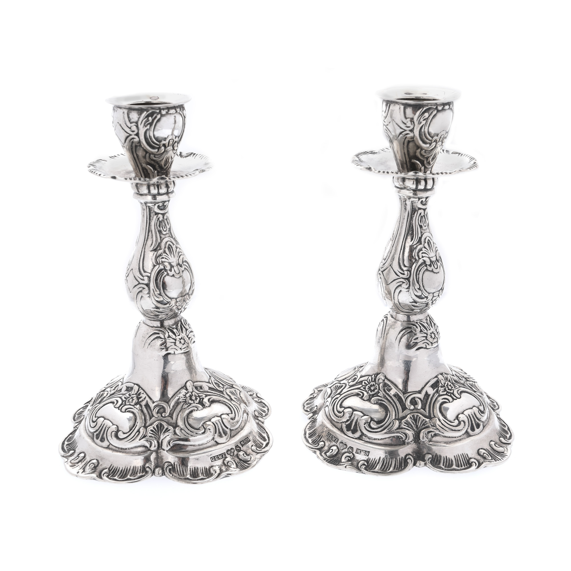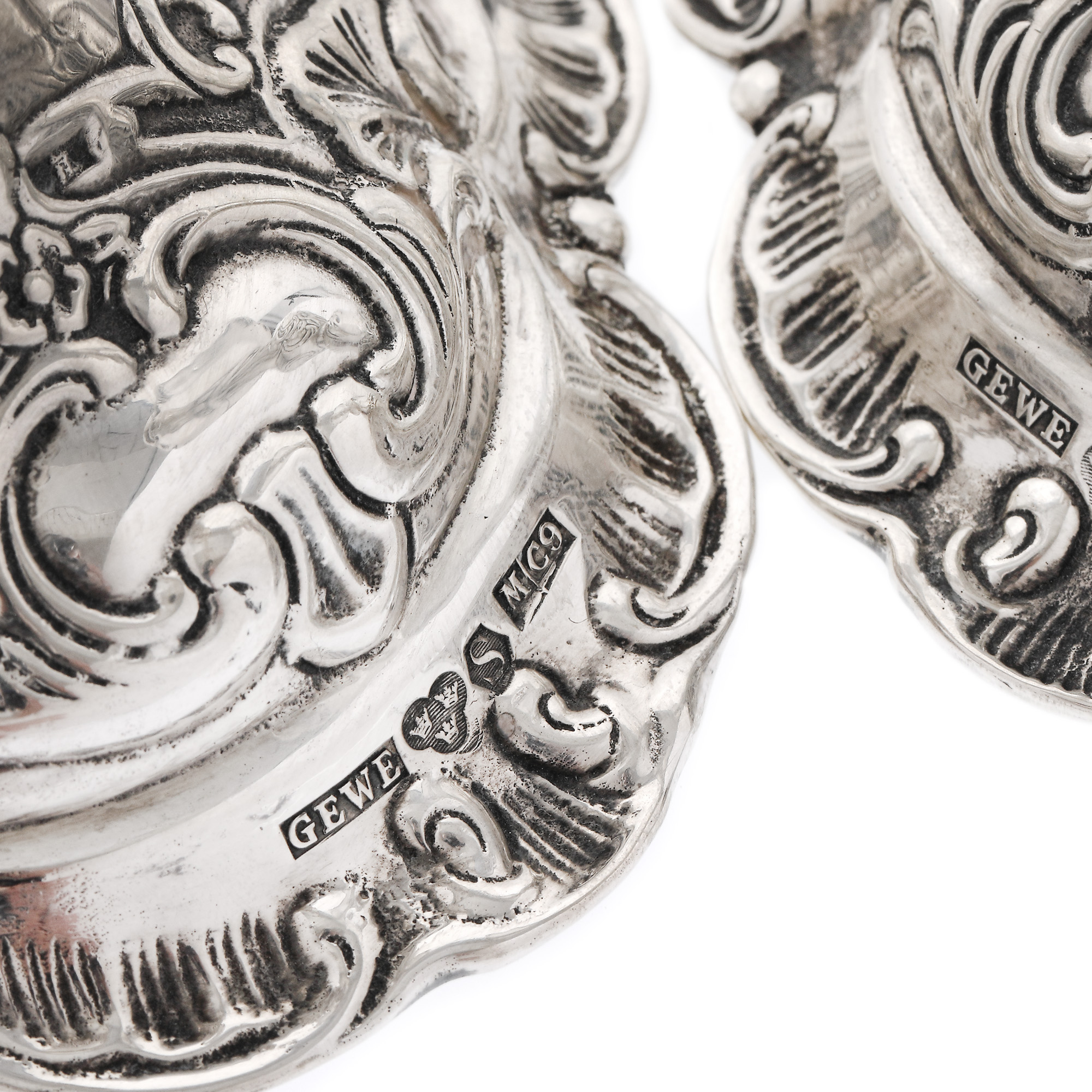 138. Pereche de sfeșnice Neo-Rococo din argint, meșter Georg Wessfelt [1977]