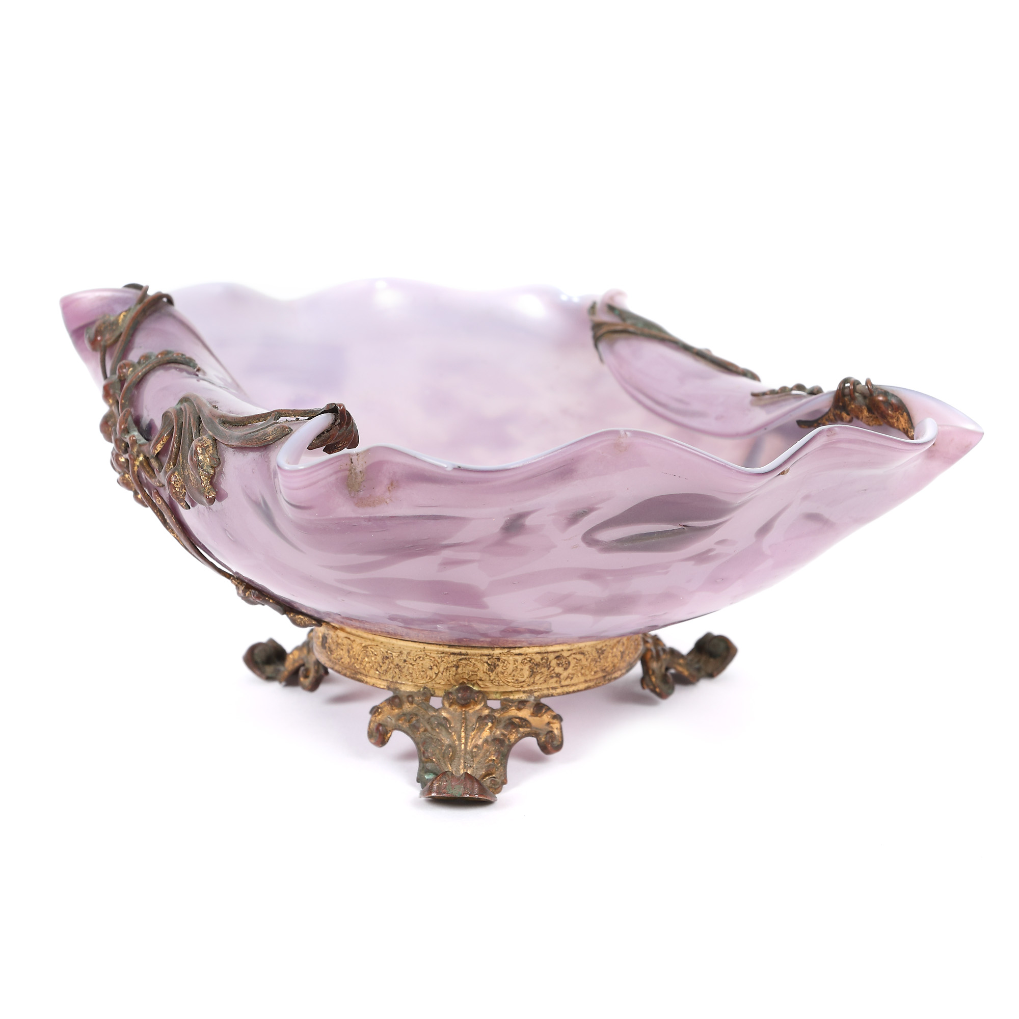 sticlă stratificată și iridescentă; montură din metal parțial aurit